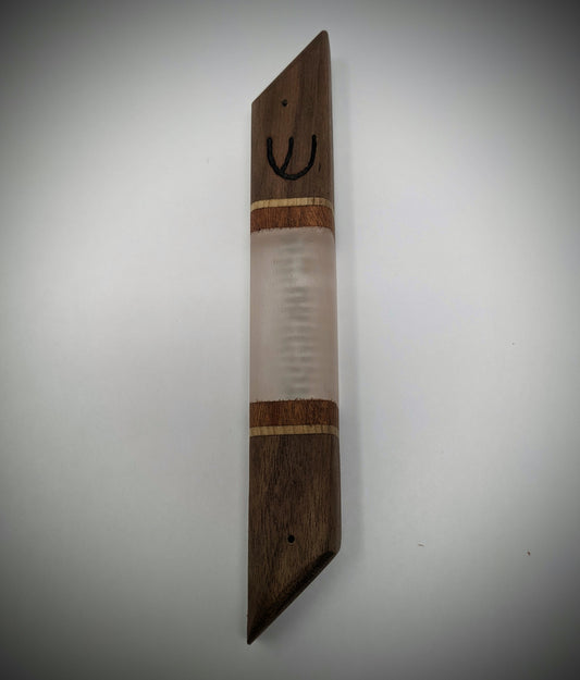 Walnut Diagonal Wood and Resin Window Mezuzah