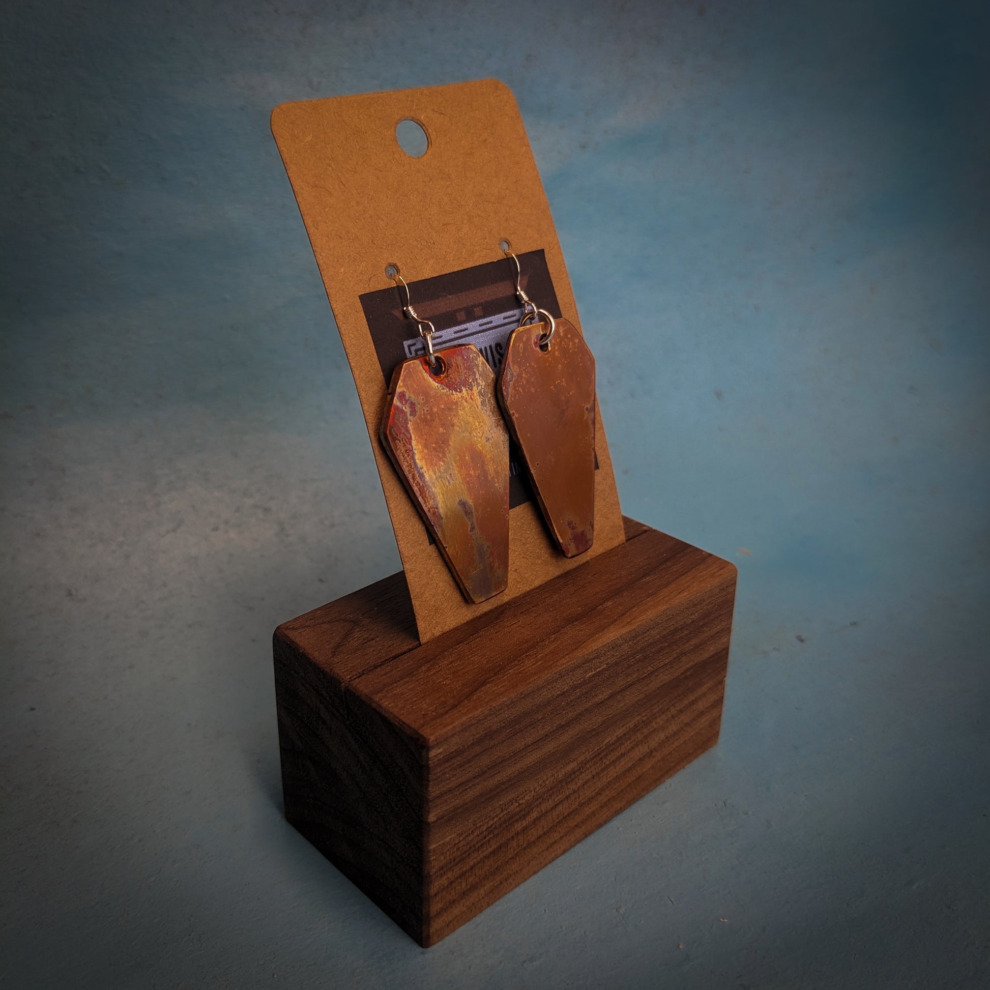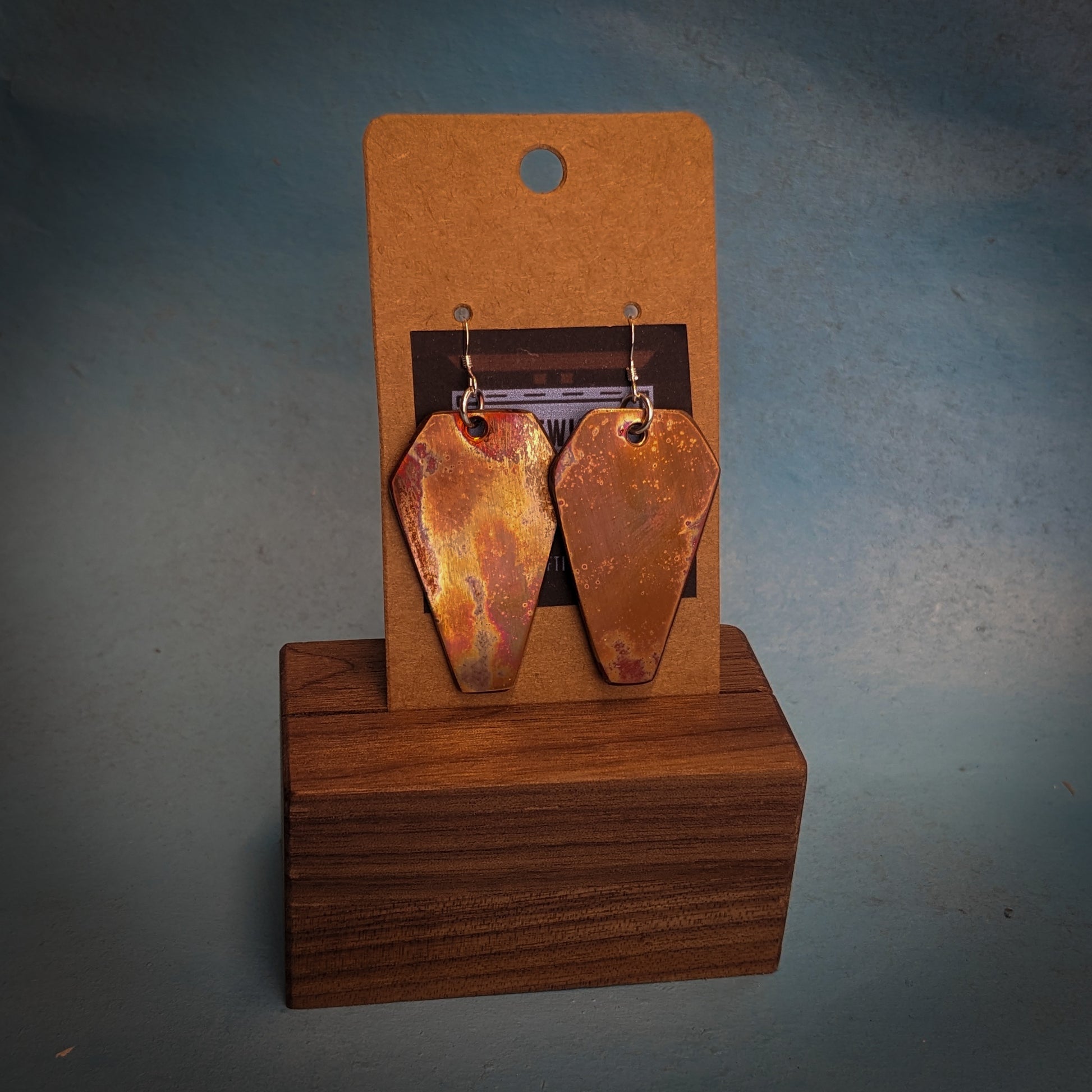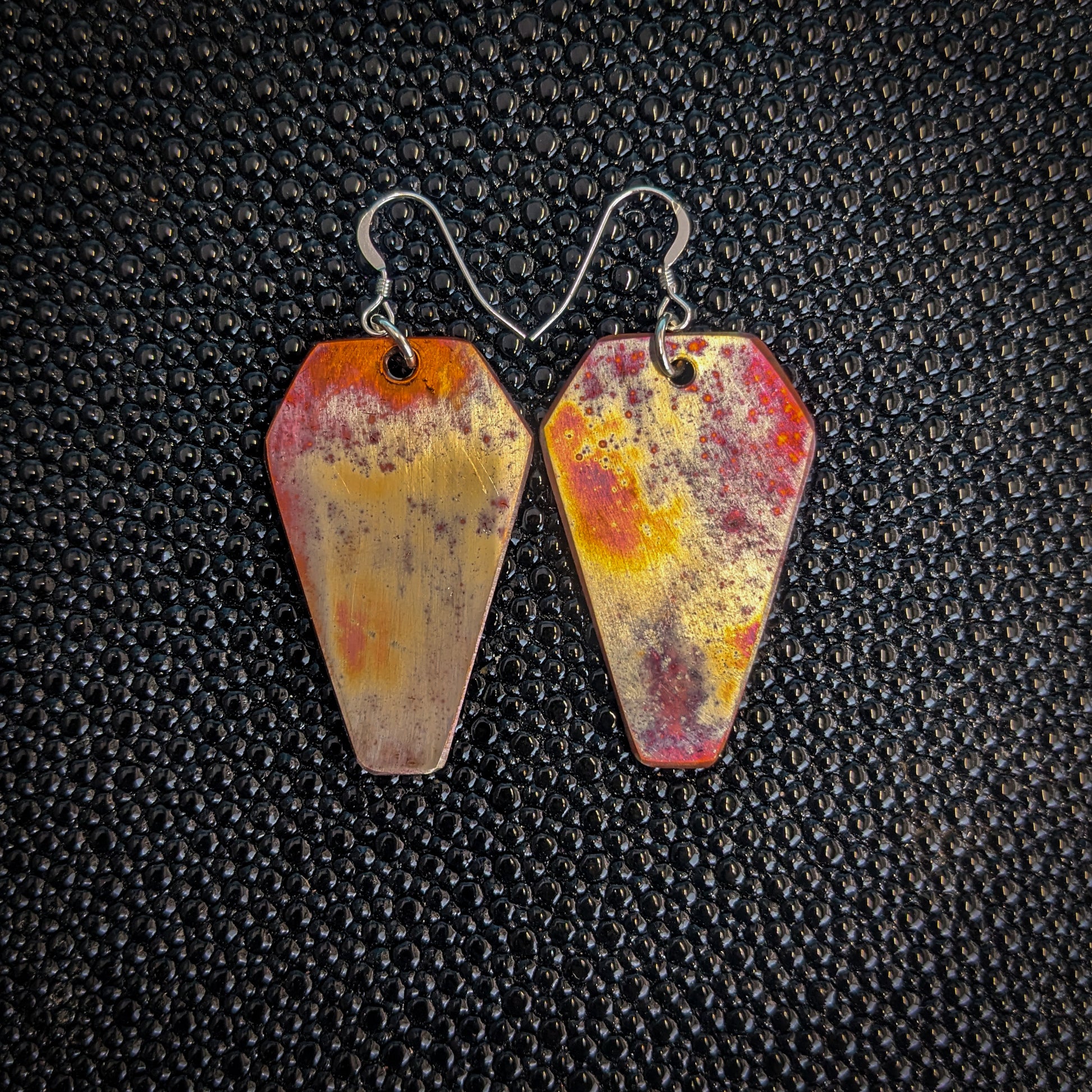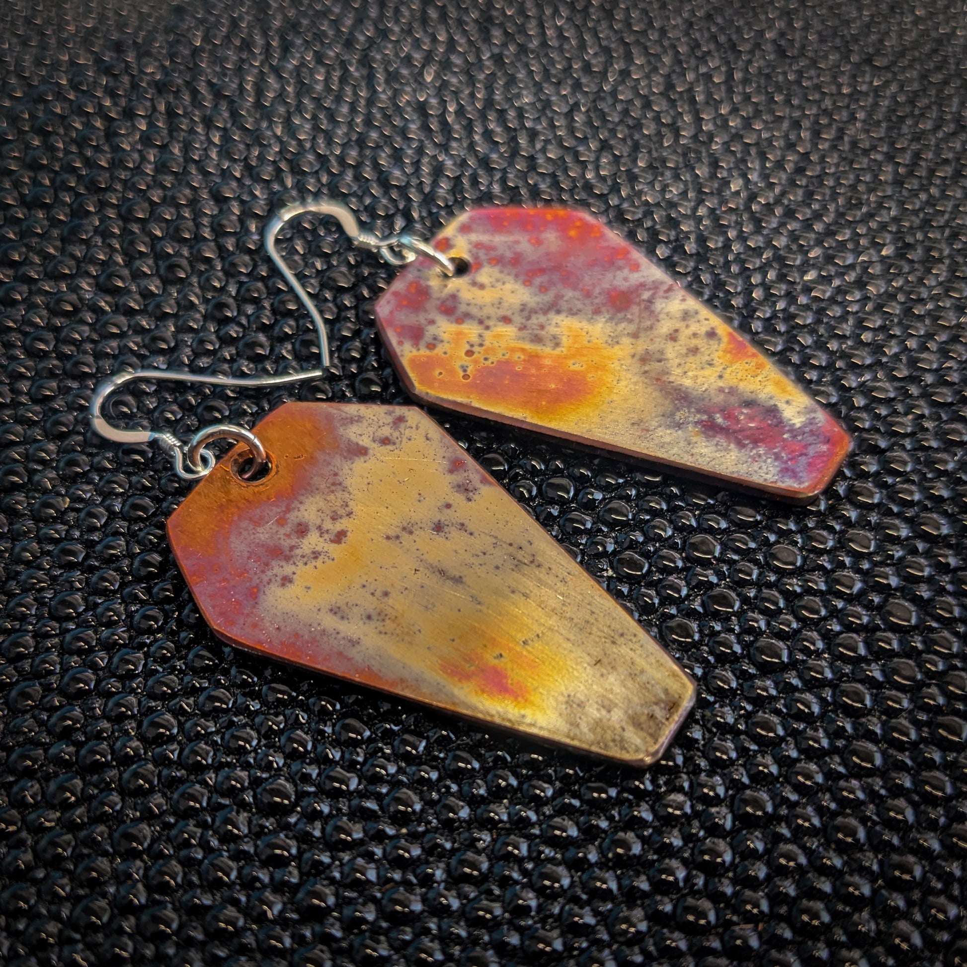Handmade, lightweight, one of a kind, colorful copper dangle earrings! All of my earrings are hand sanded and tempered and hung from sterling silver hardware.