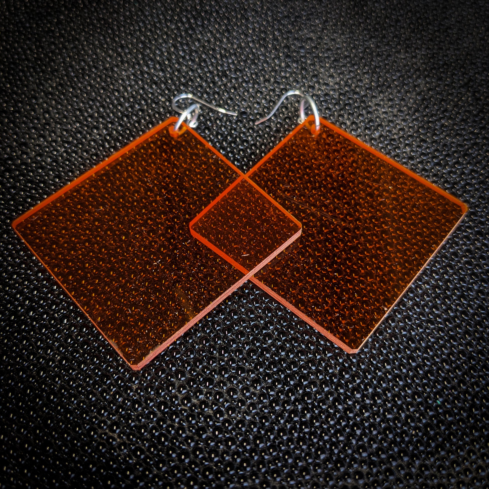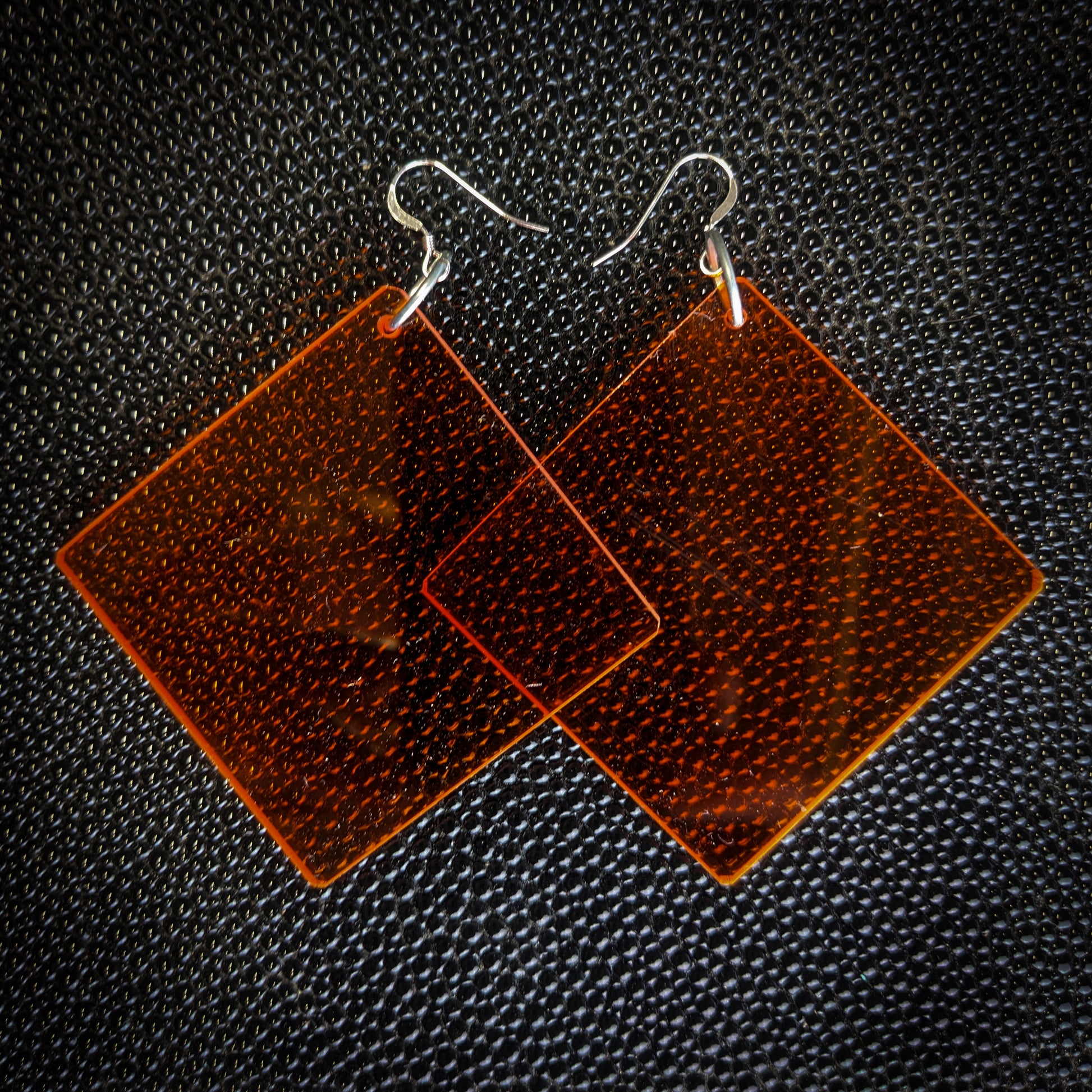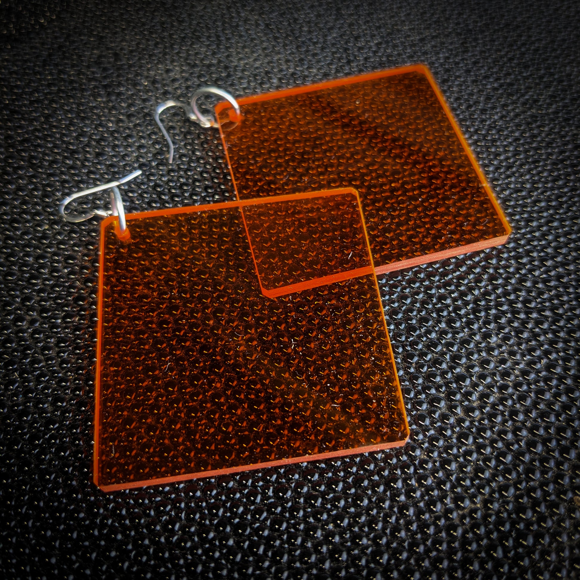 Handmade, lightweight, one of a kind, recycled plastic dangle earrings! All of my earrings are hand cut, sanded to shape, and hung from sterling silver hardware. They are made out of durable, bright, recycled plastics.
