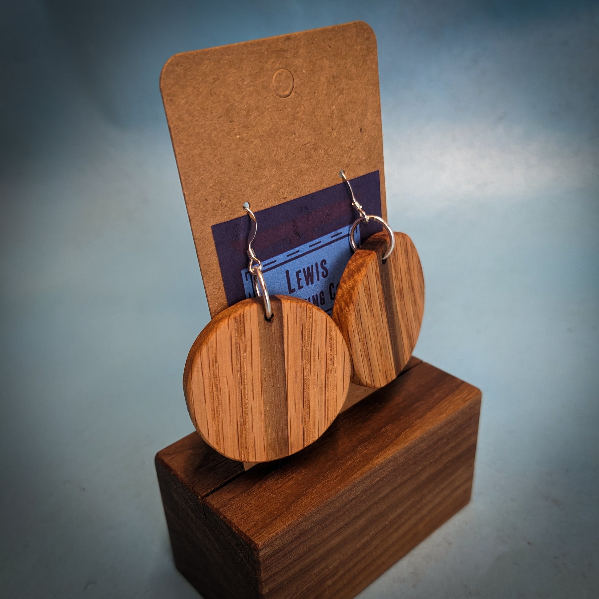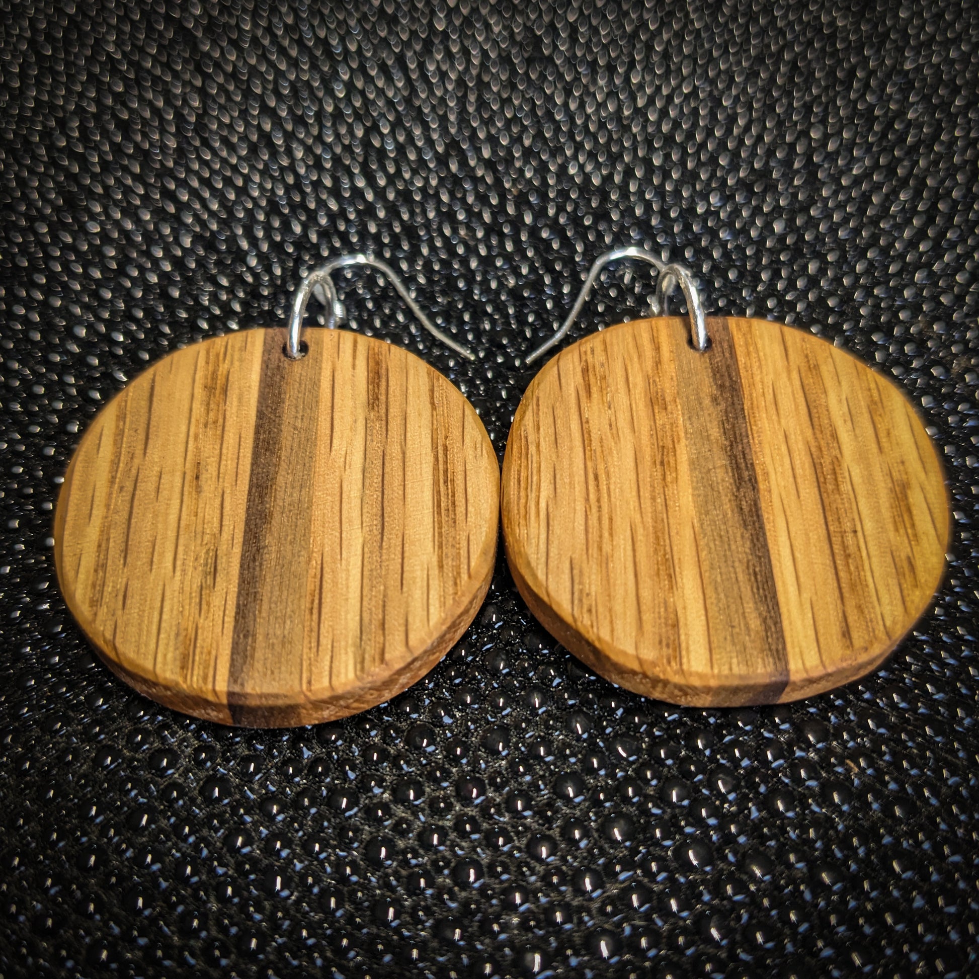 These earrings are made from red oak and walnut!