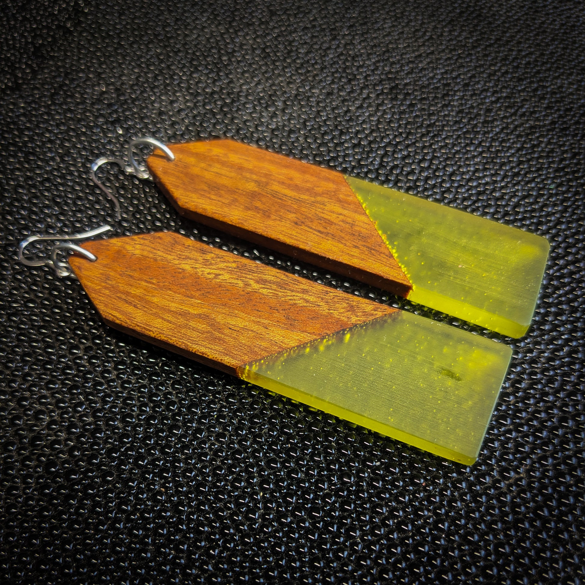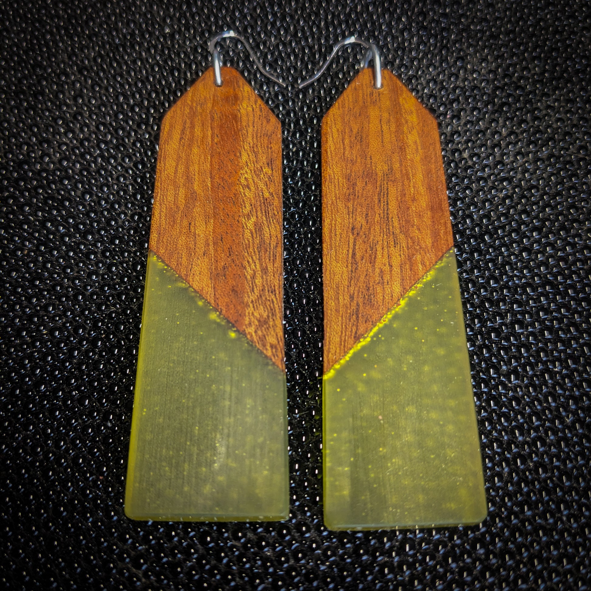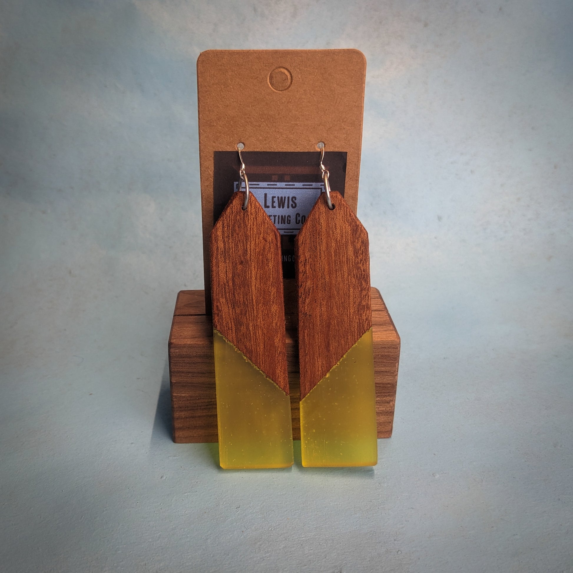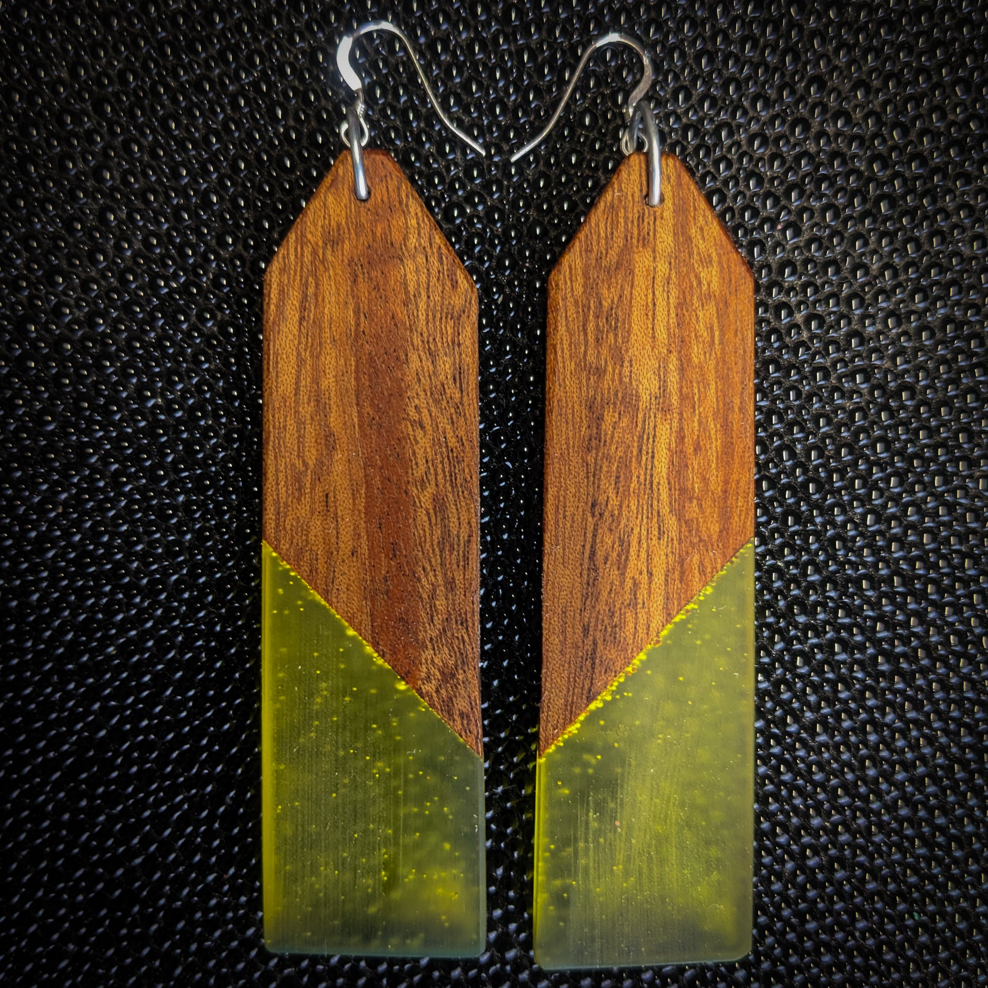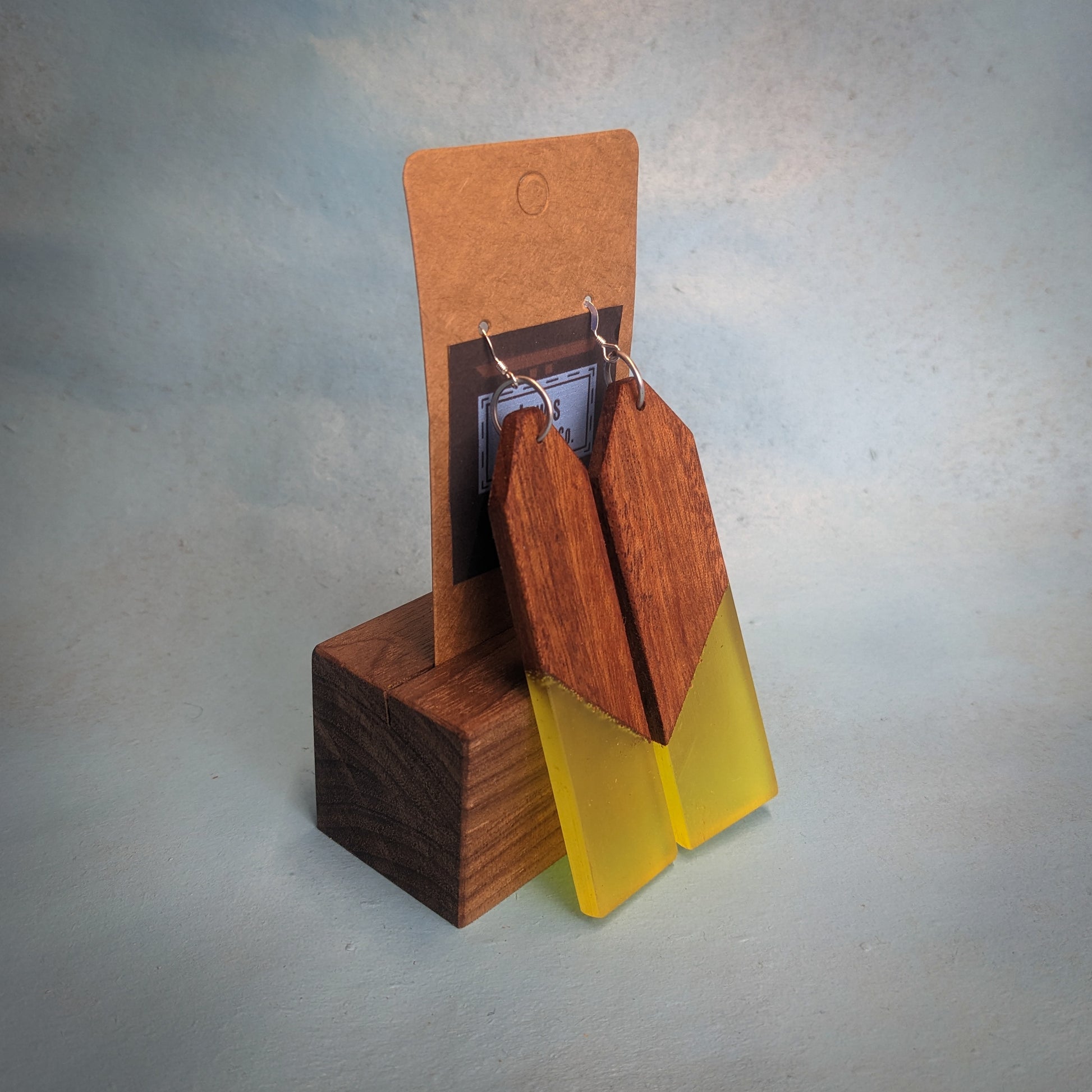 Handmade, lightweight, one of a kind, colorful wood and resin dangle earrings! All of my earrings are hand sanded to a silky smooth finish and hung from sterling silver hardware. I use a natural beeswax and citrus oil finish on all of my earrings.