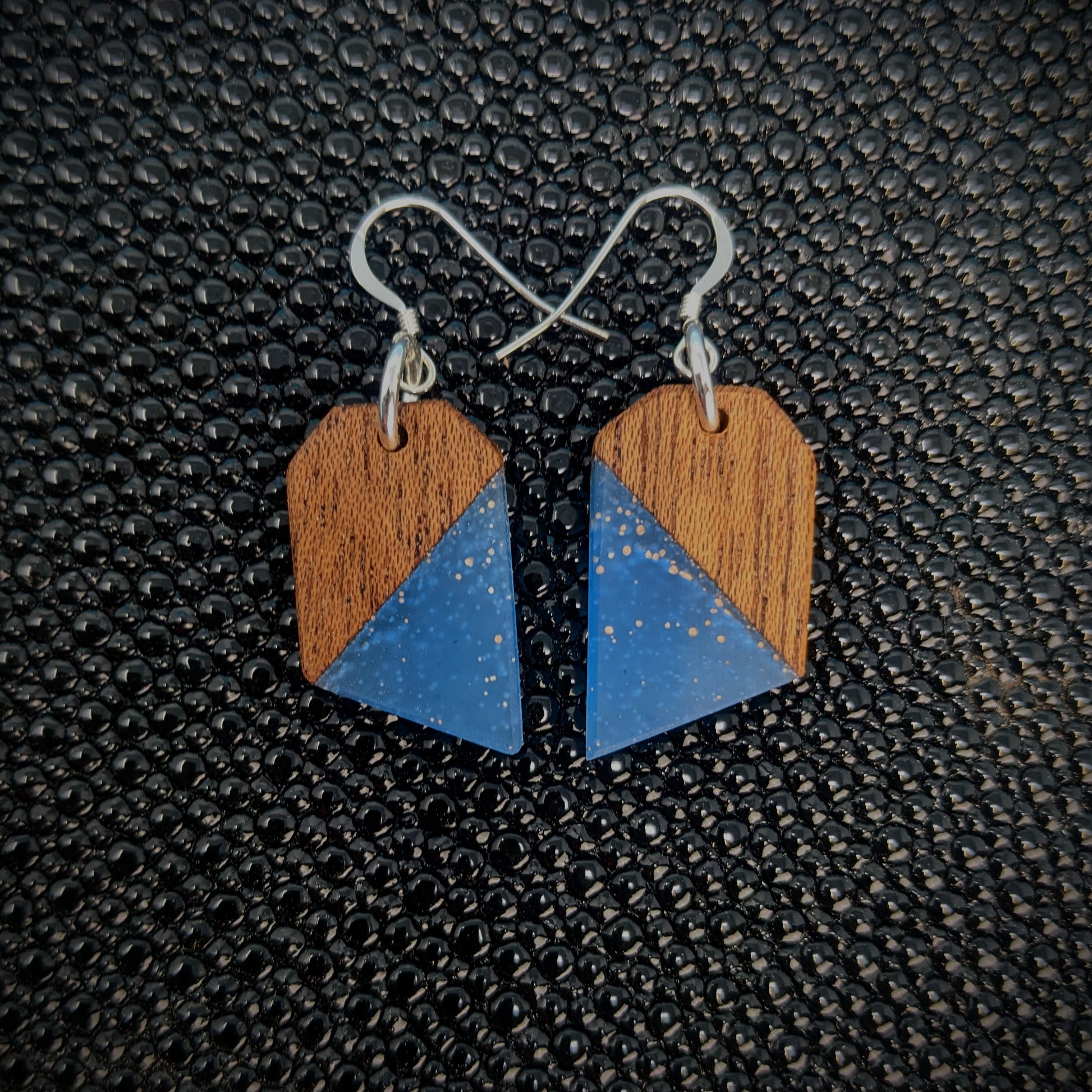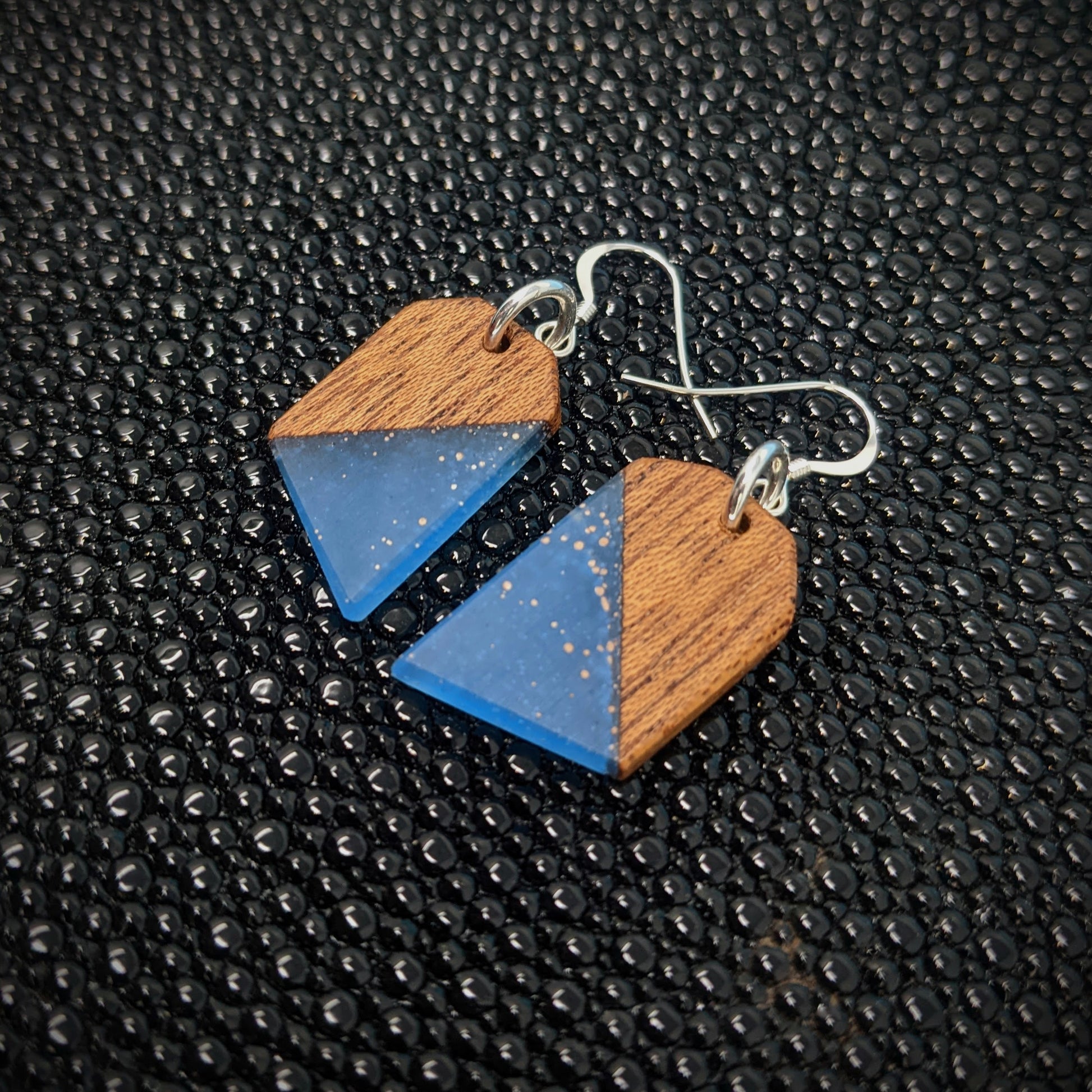 Handmade, lightweight, one of a kind, colorful wood and resin dangle earrings! All of my earrings are hand sanded to a silky smooth finish and hung from sterling silver hardware. I use a natural beeswax and citrus oil finish on all of my earrings.