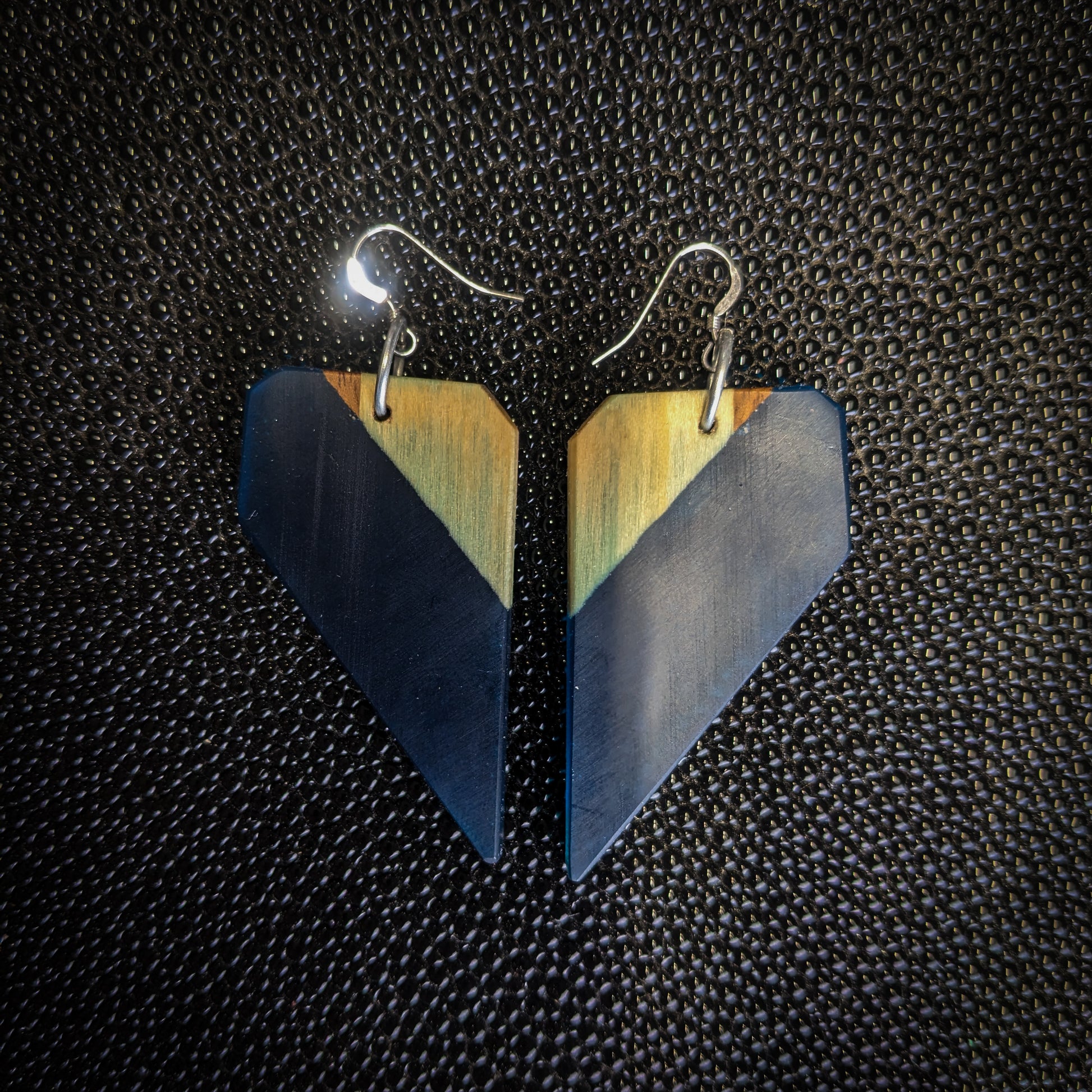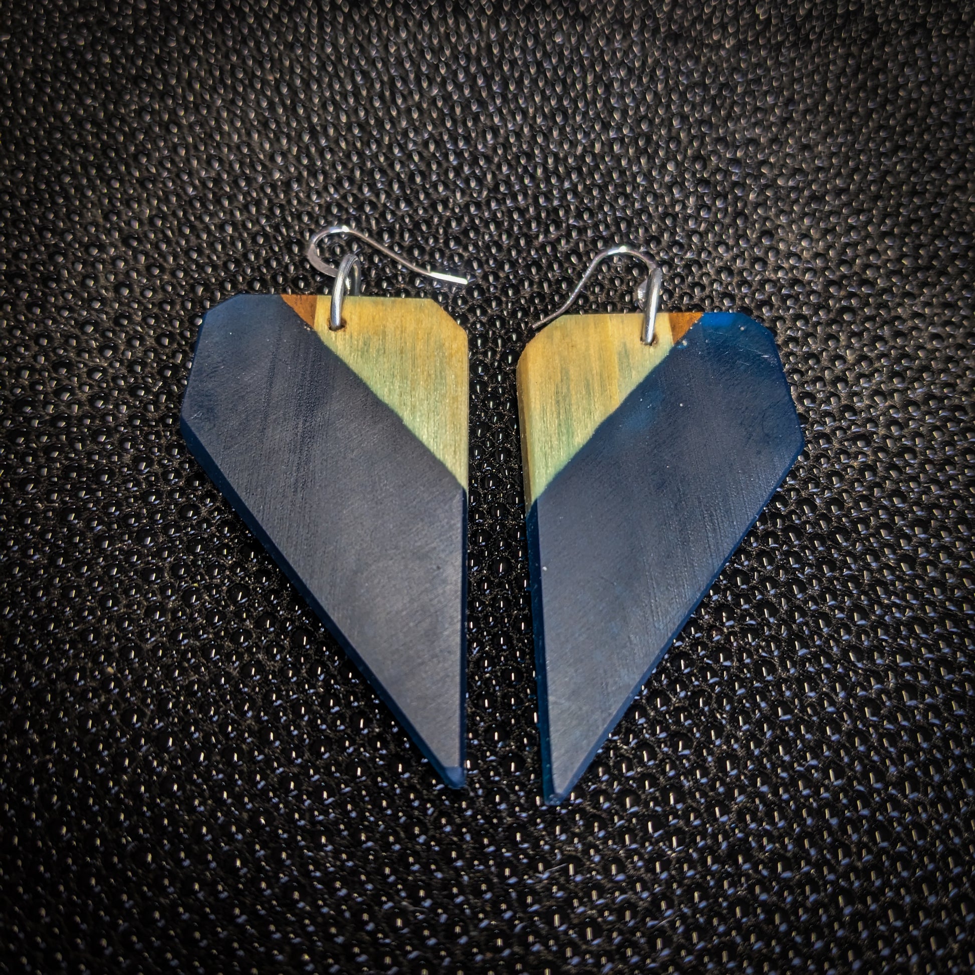 Handmade, lightweight, one of a kind, colorful wood and resin dangle earrings! All of my earrings are hand sanded to a silky smooth finish and hung from sterling silver hardware. I use a natural beeswax and citrus oil finish on all of my earrings.