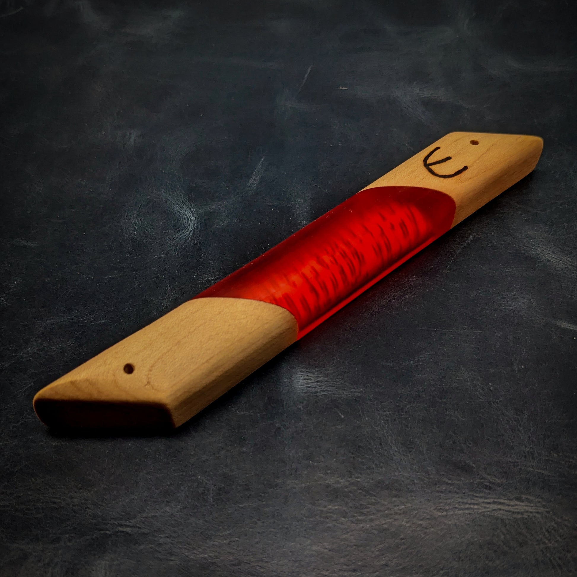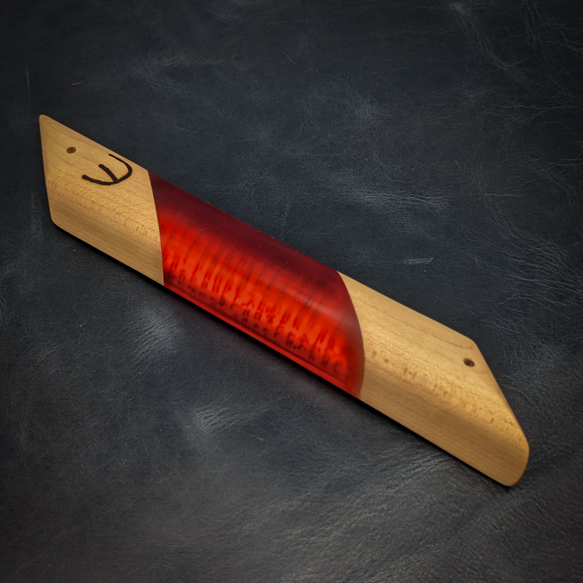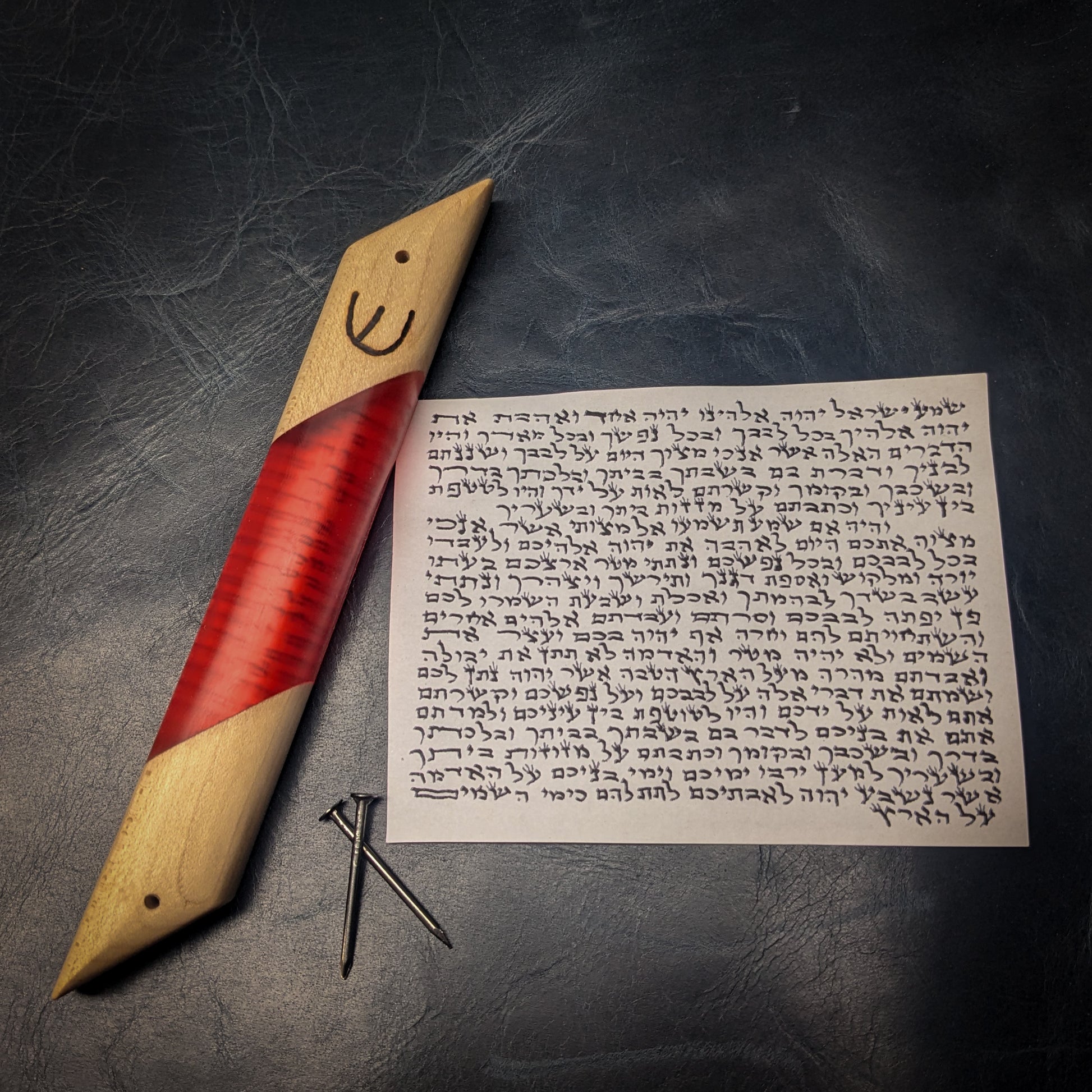My signature hardwood and resin "window" mezuzah case is a perfect addition to any Jewish household. This one-of-a-kind mezuzah is made from hard maple and and red resin. The clear resin allows you to see the scroll inside! A perfect gift for Bar/Bat Mitzvah's, holidays, weddings or any other occasion. My mezuzot are all finished with natural beeswax and citrus oil.