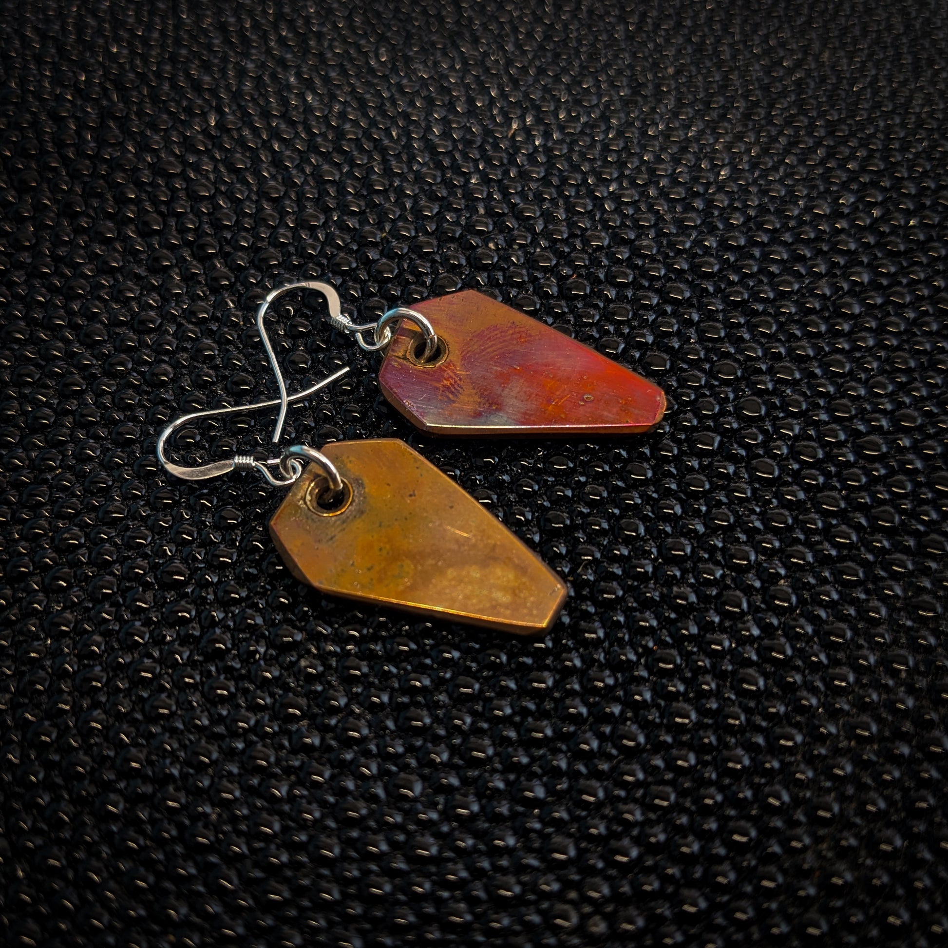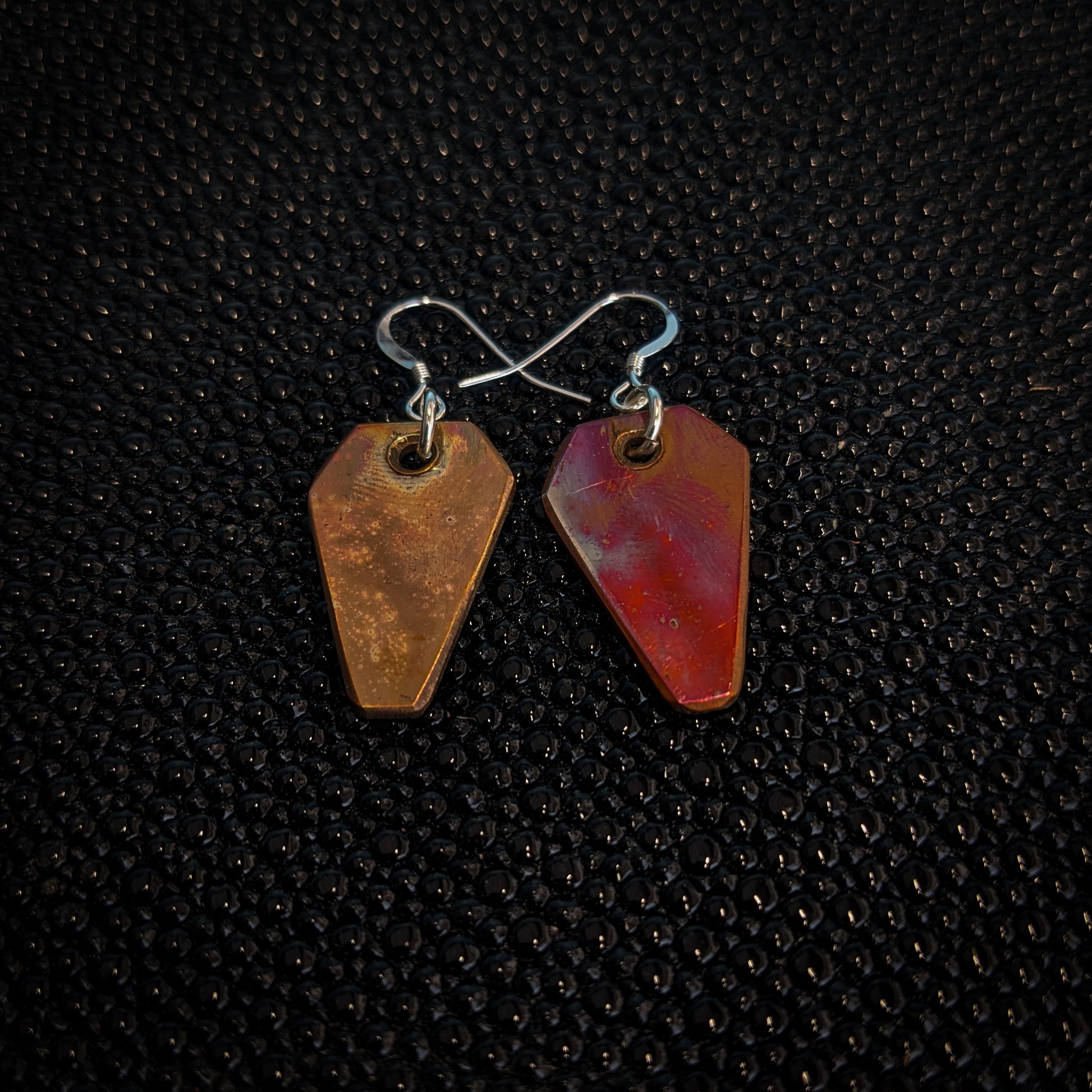 Handmade, lightweight, one of a kind, colorful copper dangle earrings! All of my earrings are hand sanded and tempered and hung from sterling silver hardware.