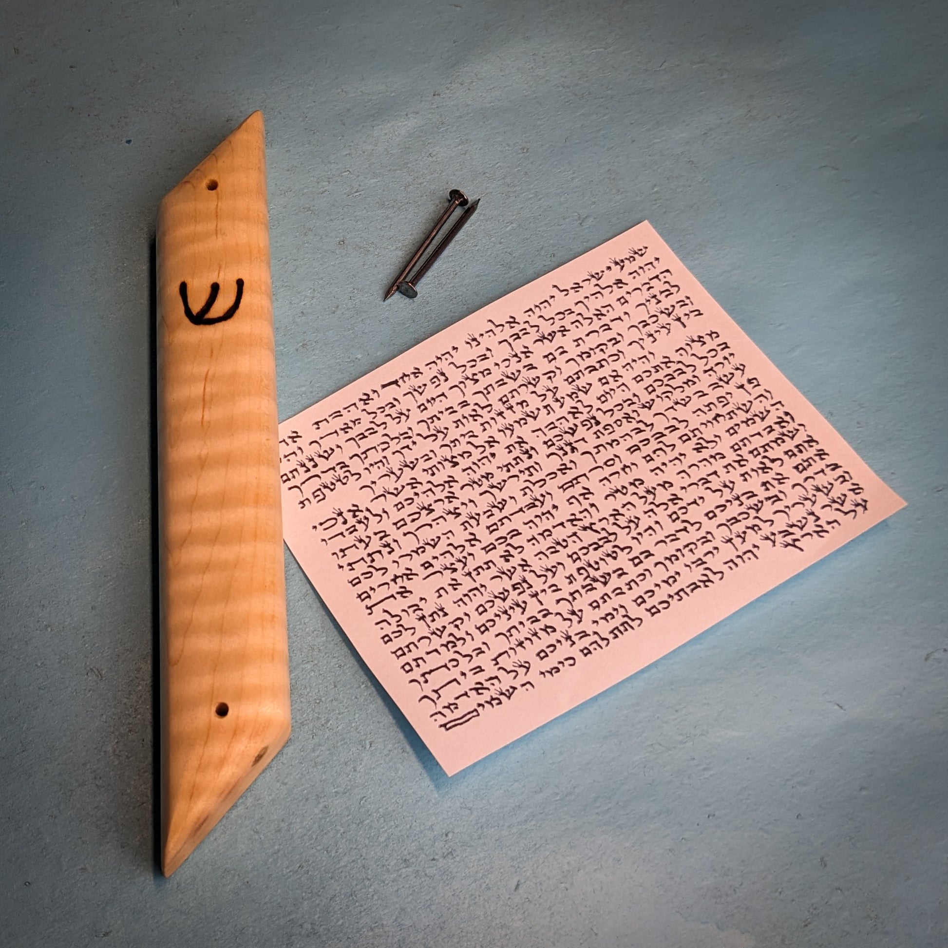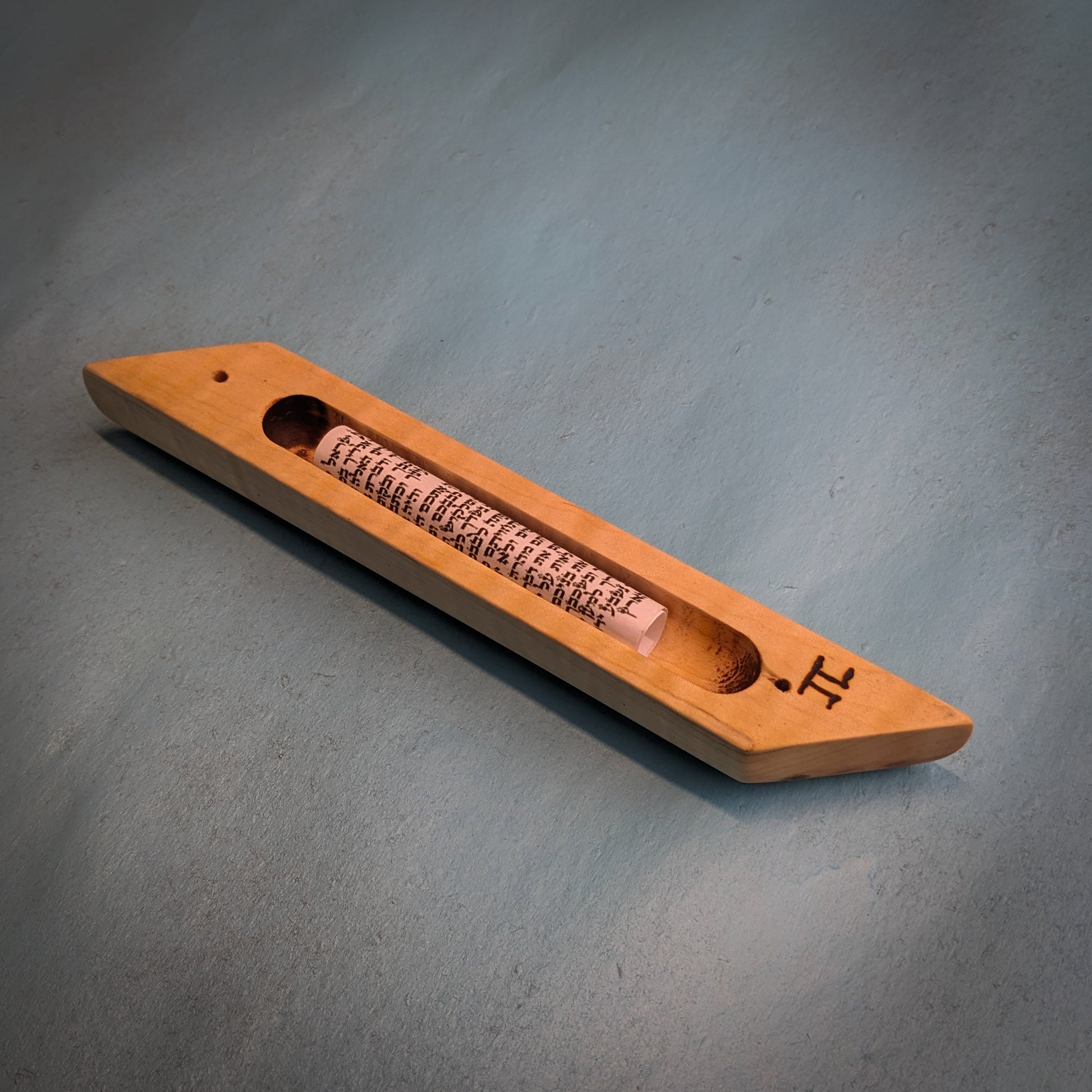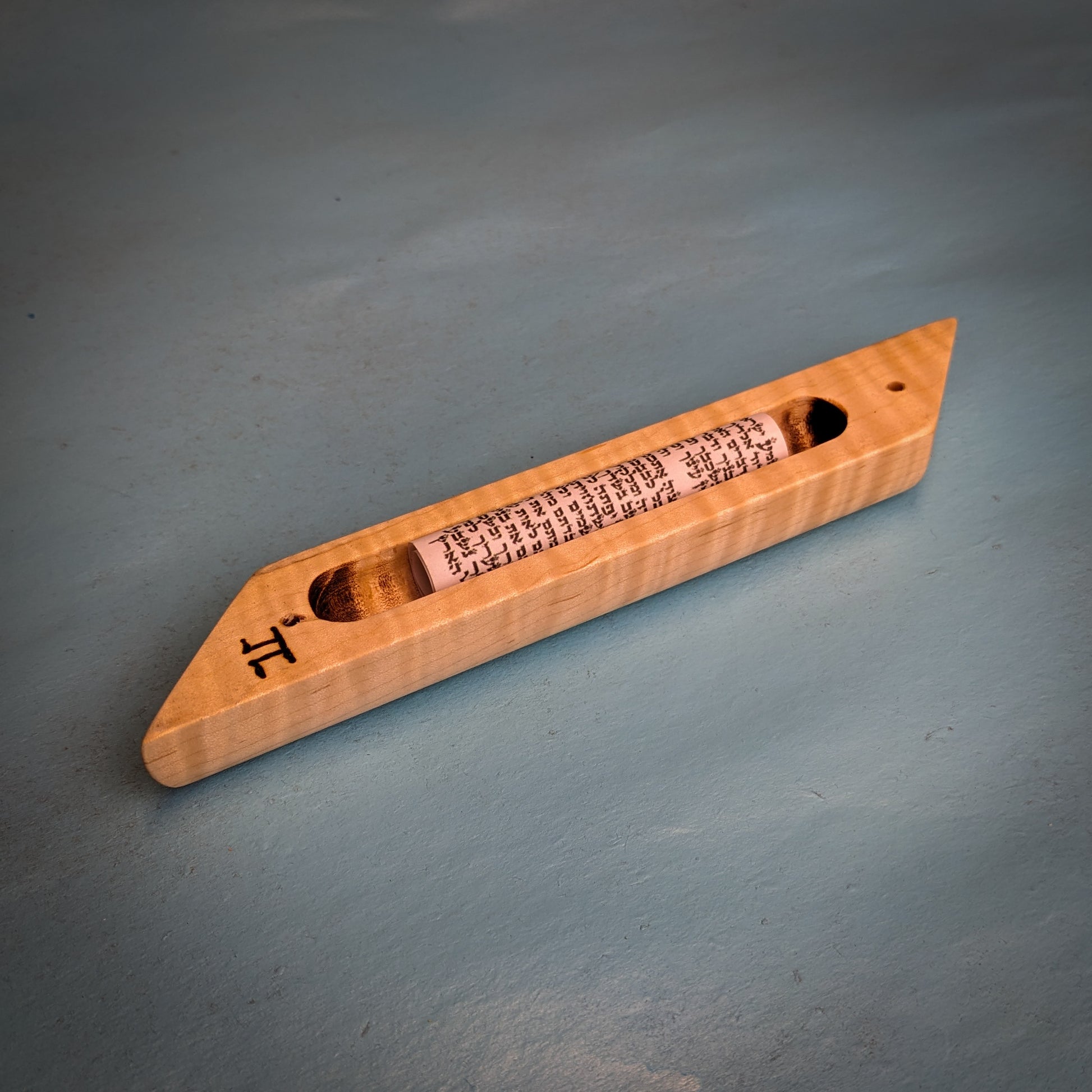 My signature hardwood mezuzah case is a perfect addition to any Jewish household. This one-of-a-kind mezuzah is made from figured, curly maple. A perfect gift for Bar/Bat Mitzvah's, holidays, weddings or any other occasion. My mezuzot are all finished with natural beeswax and citrus oil.