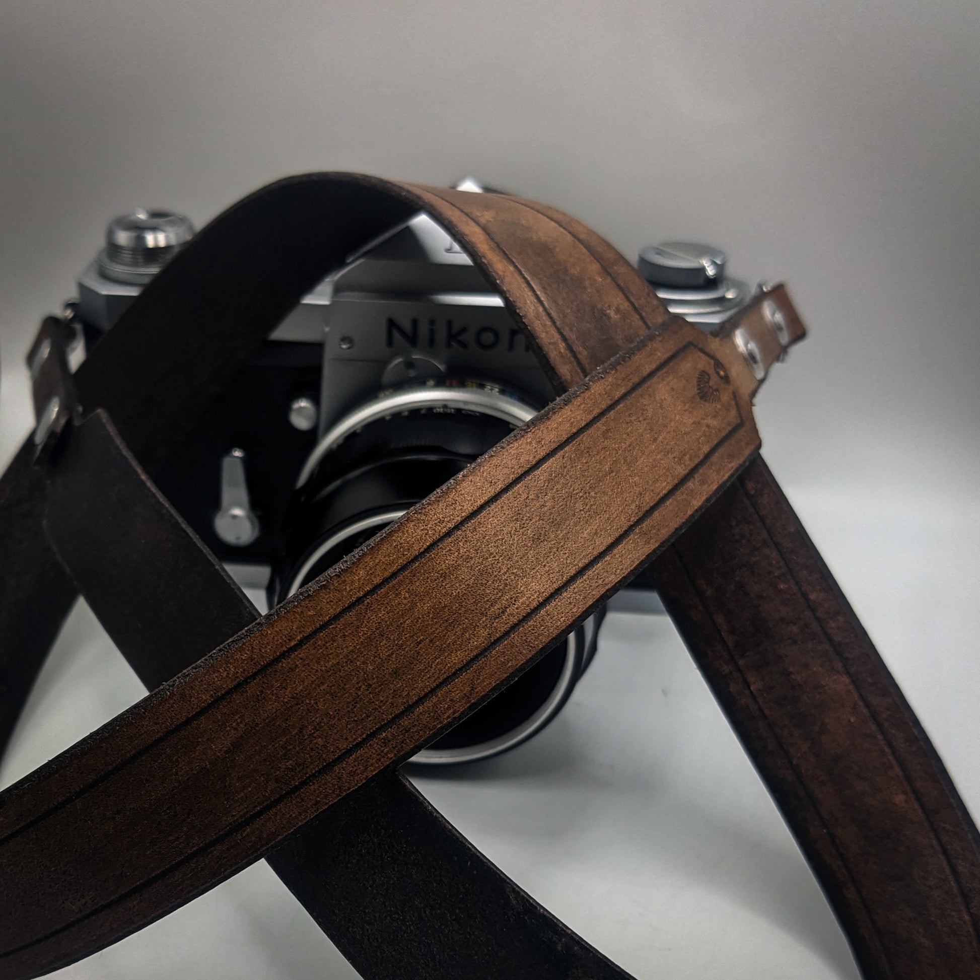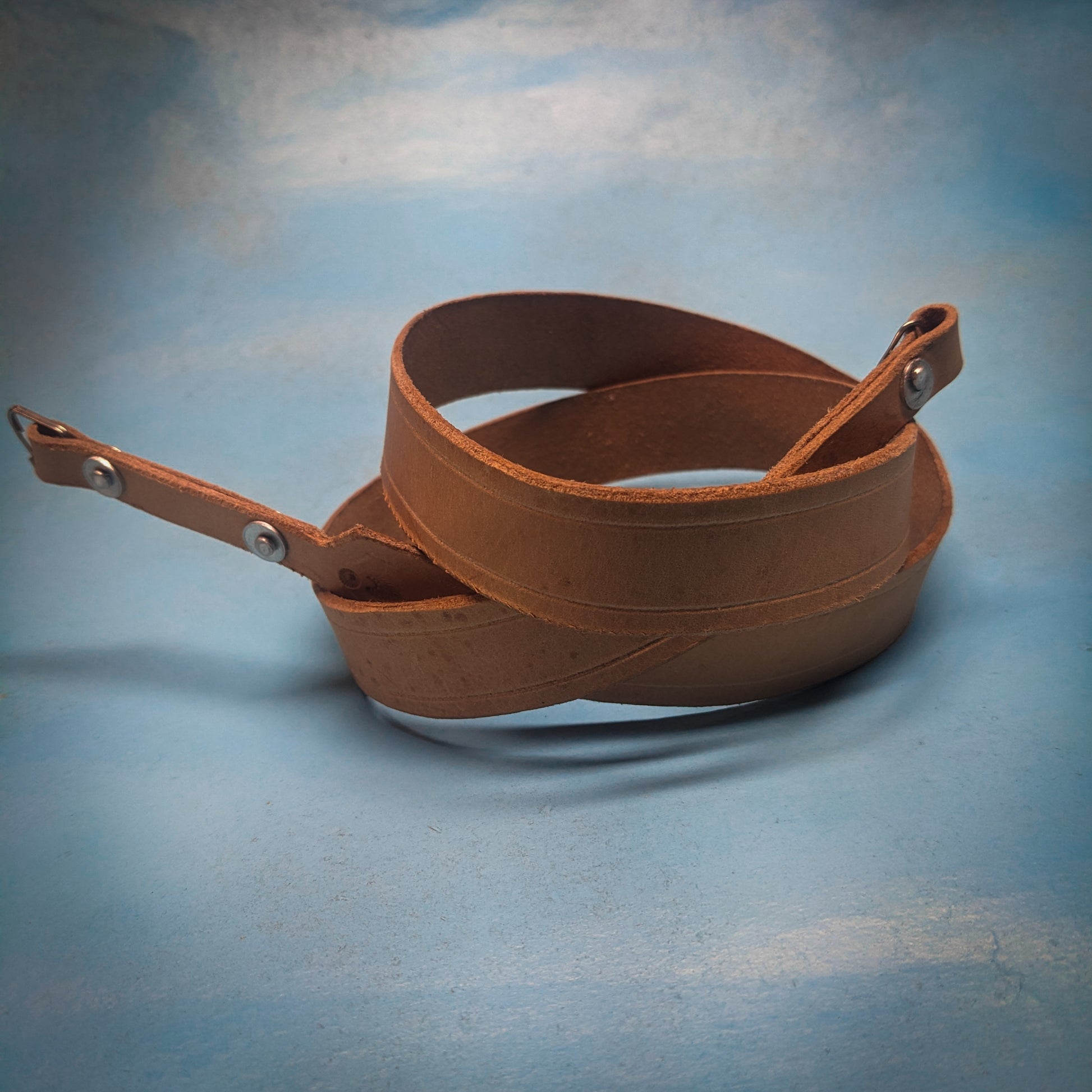 These made-to-order leather camera straps are designed for SLR or DSLR cameras and make an excellent addition to any photographers kit. They are a standard 40" long and 1" wide, and made from durable, veg tan leather that will last a lifetime.