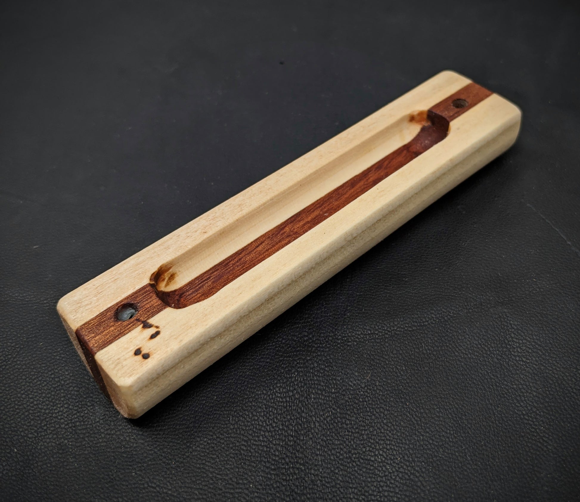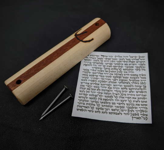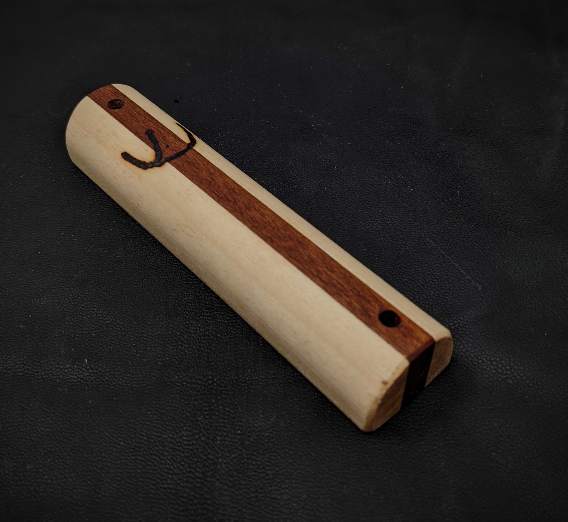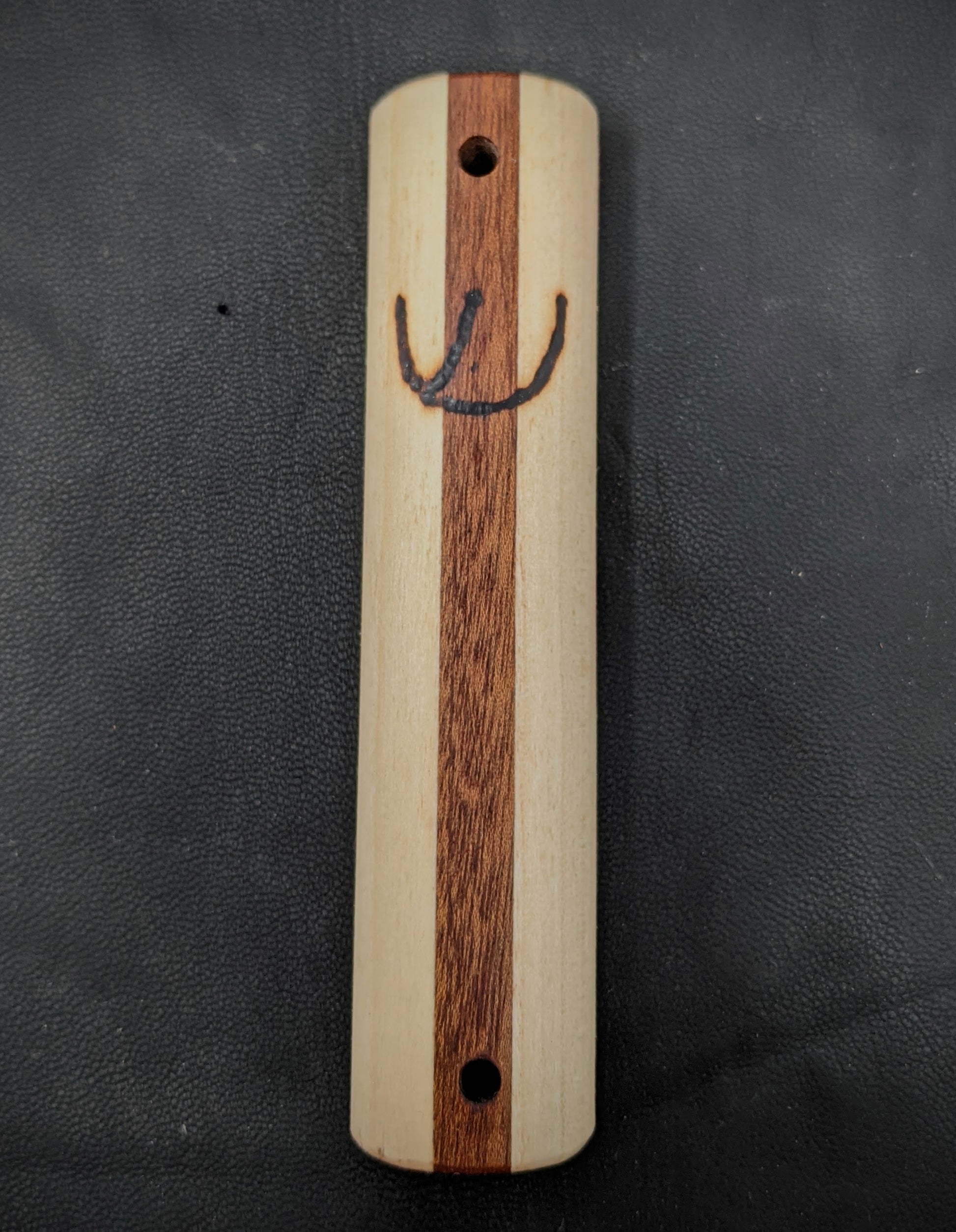 This smaller version of my hardwood mezuzah case is perfect addition to any Jewish household. This one-of-a-kind mezuzah is made from poplar with a beautiful stripe of mahogany. A perfect gift for Bar/ Bat Mitzvah's, holidays, weddings or any other occasion!