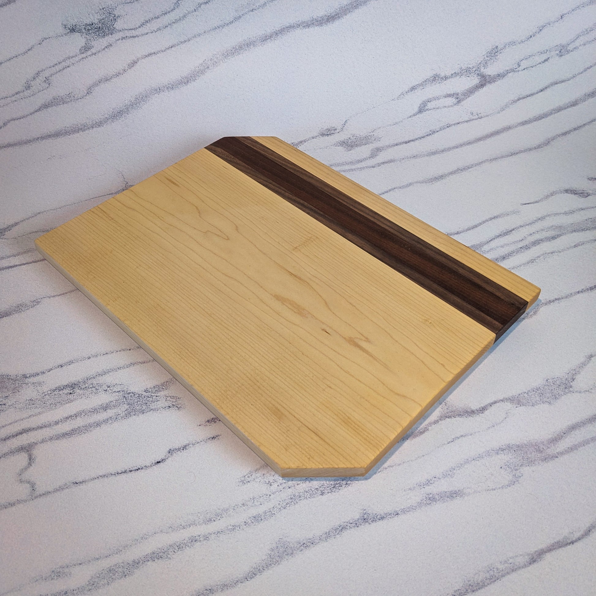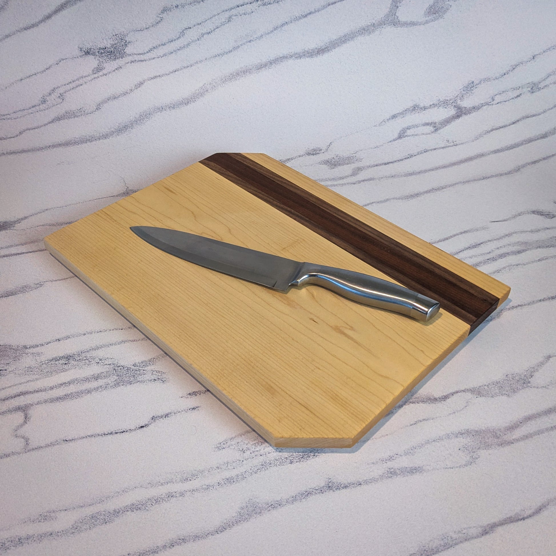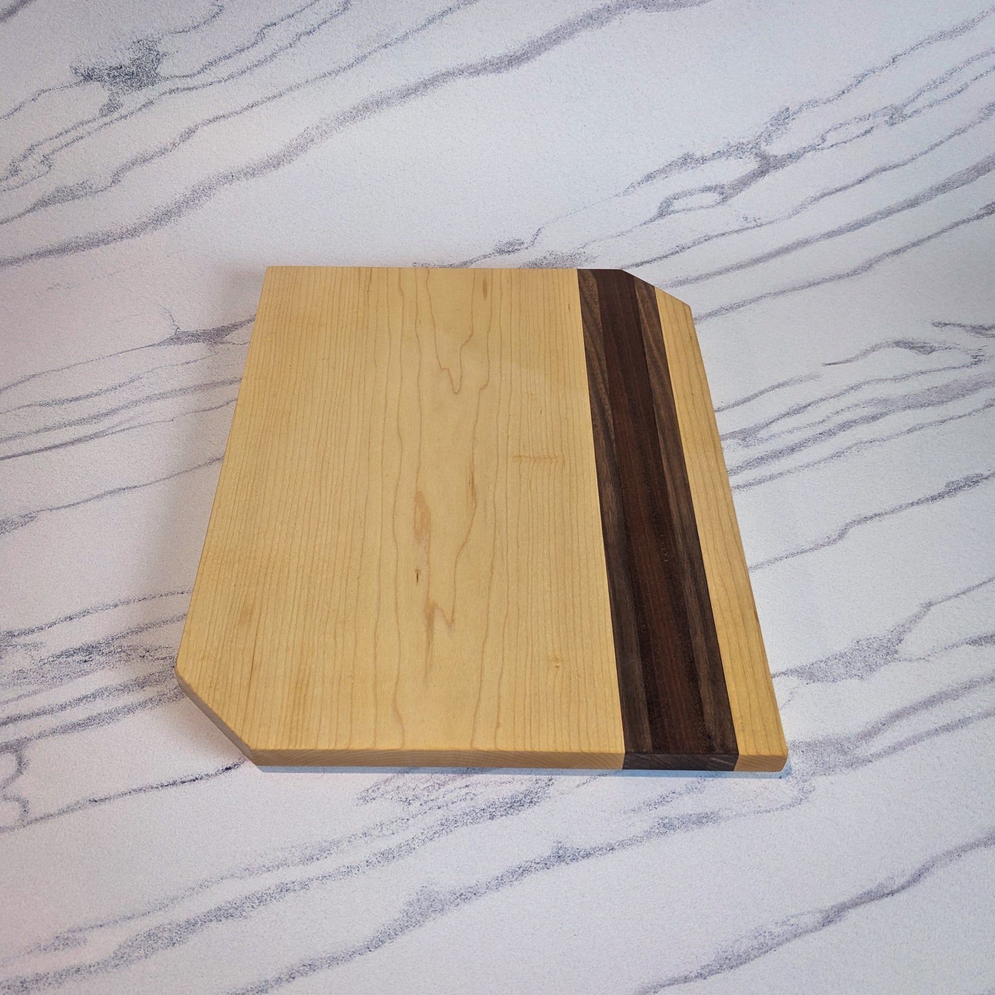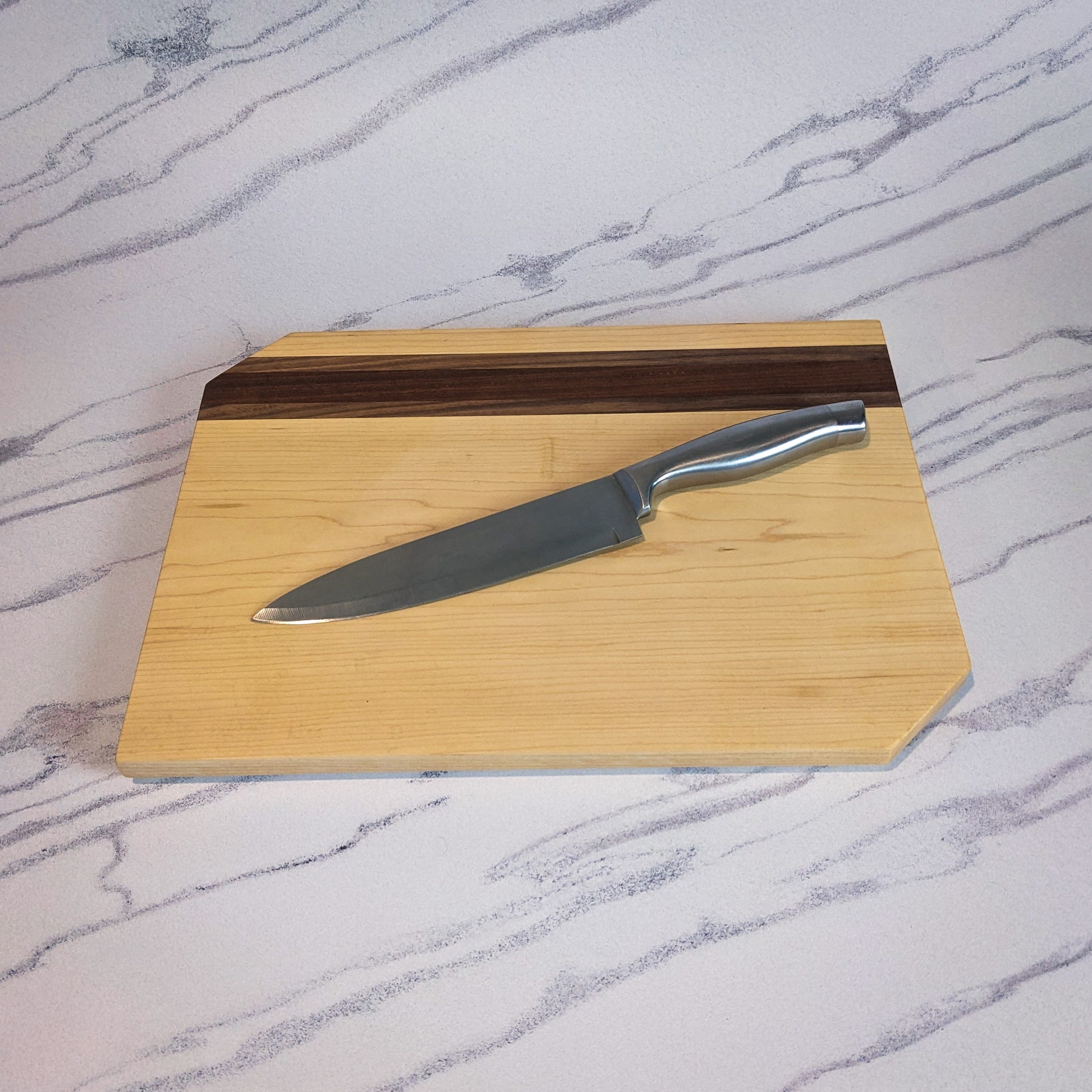 This cutting board set is a fantastic piece for your kitchen. It is made by hand out of strips of hard maple, black walnut and sapele. Excellent for cutting, prepping or serving any food in the kitchen or on the table! These boards will last generations and look fantastic the whole time.