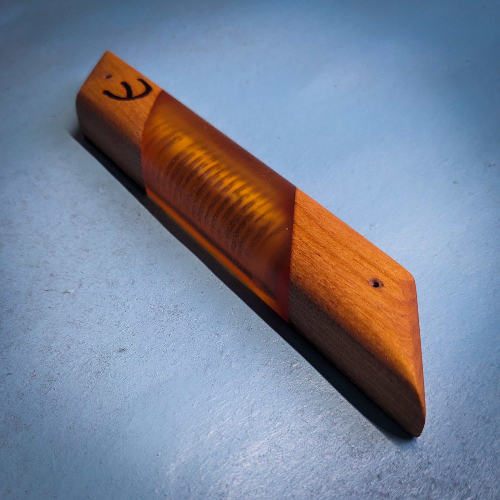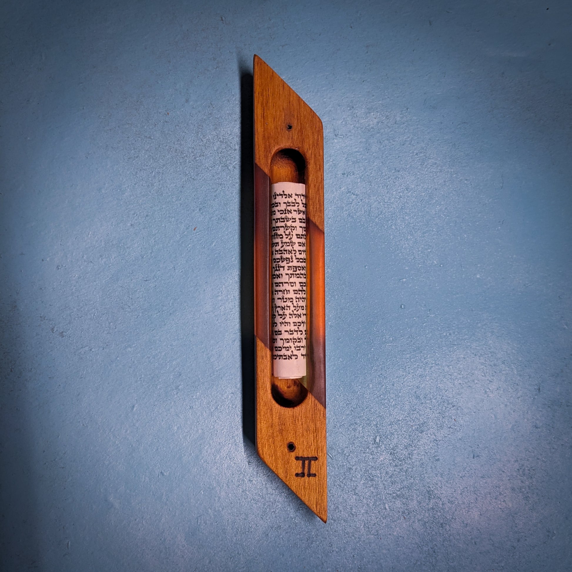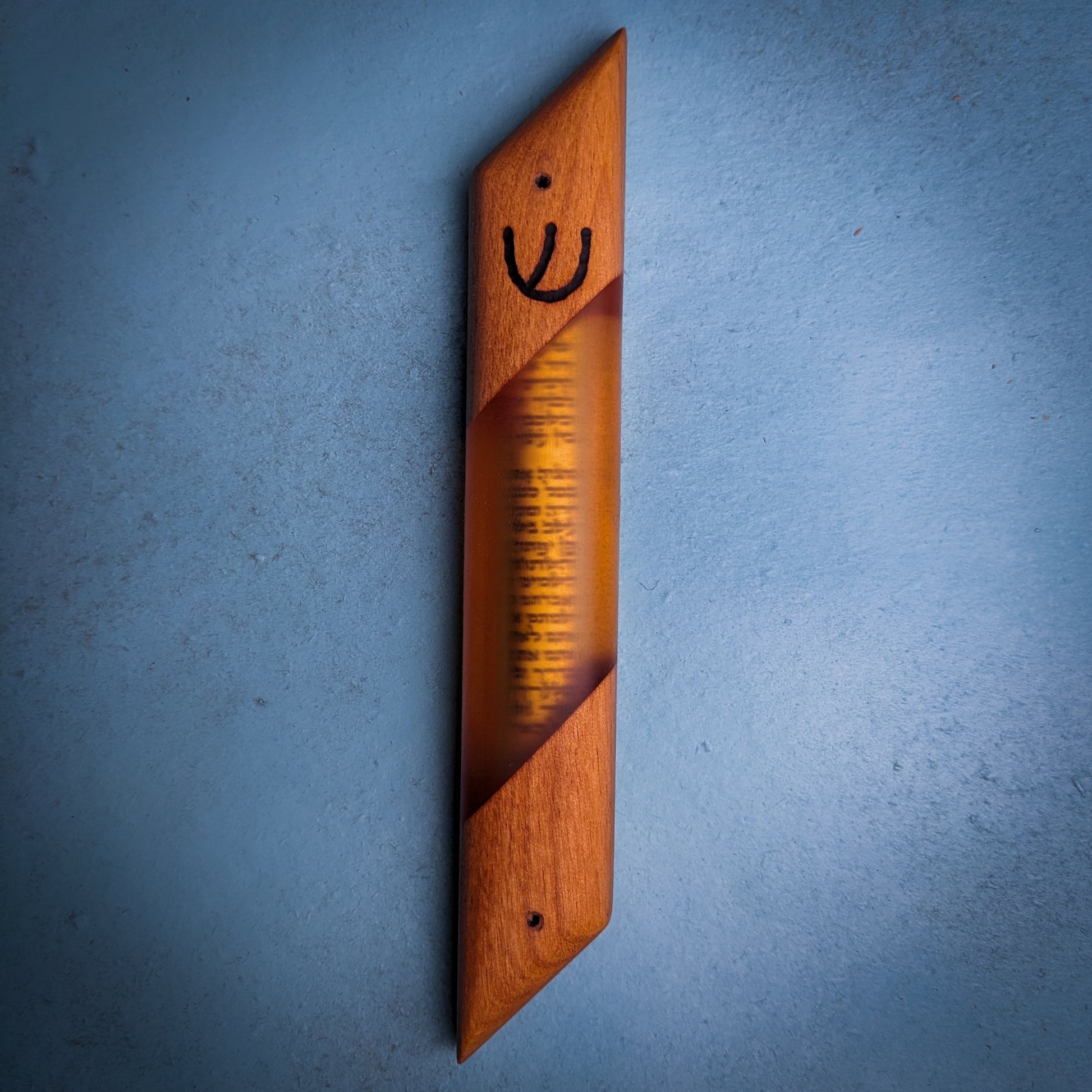 My signature hardwood and resin "window" mezuzah case is a perfect addition to any Jewish household. This one-of-a-kind mezuzah is made from alder and bright orange resin. The clear resin allows you to see the scroll inside! A perfect gift for Bar/Bat Mitzvah's, holidays, weddings or any other occasion. My mezuzot are all finished with natural beeswax and citrus oil.