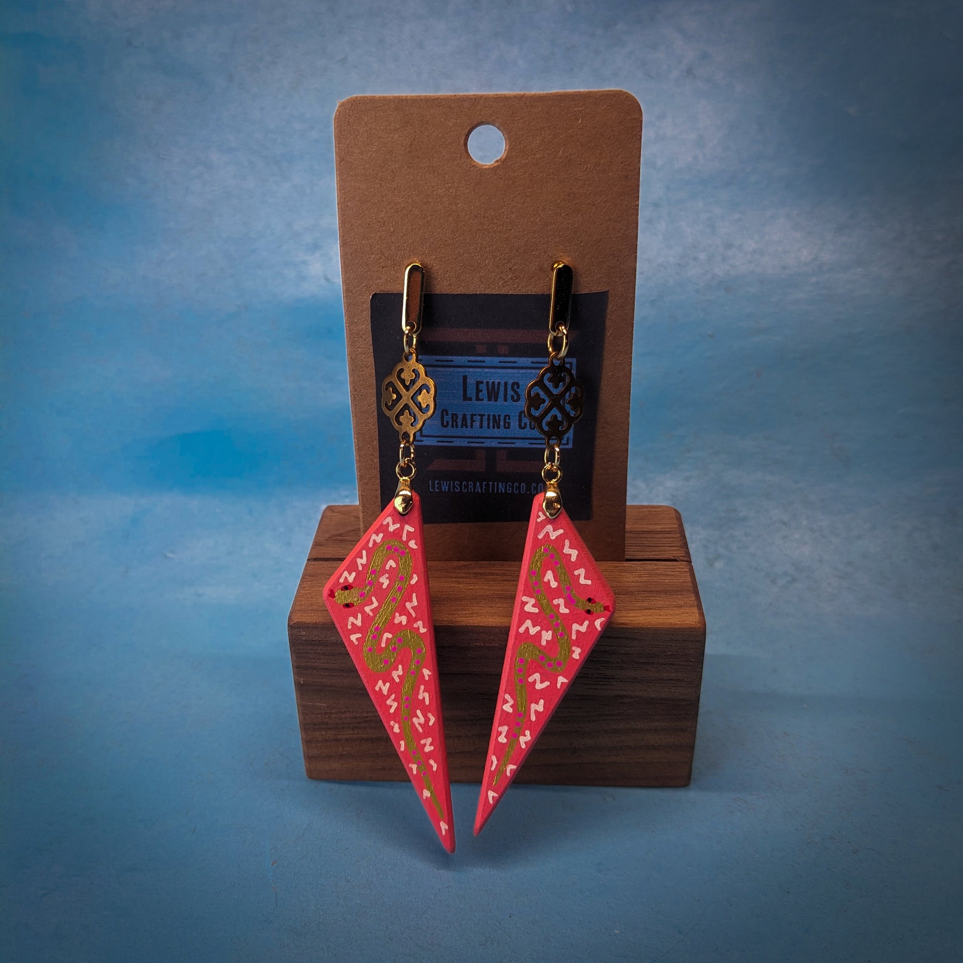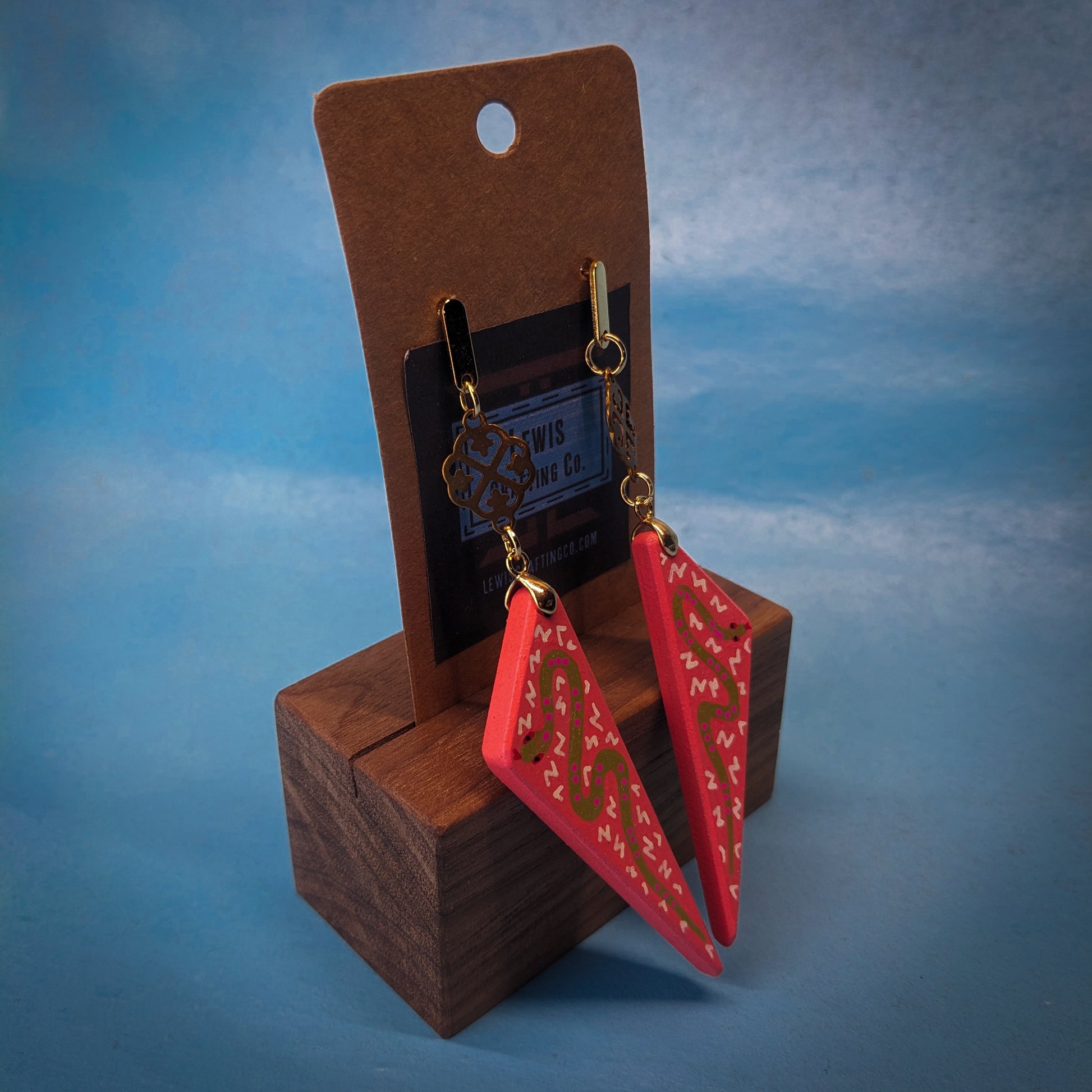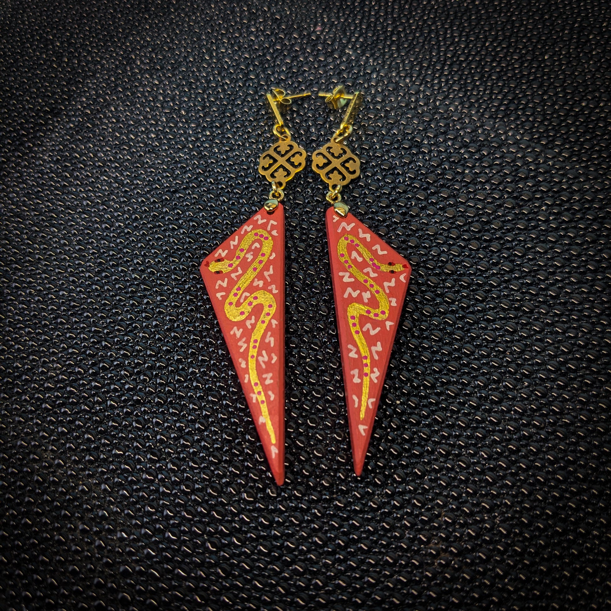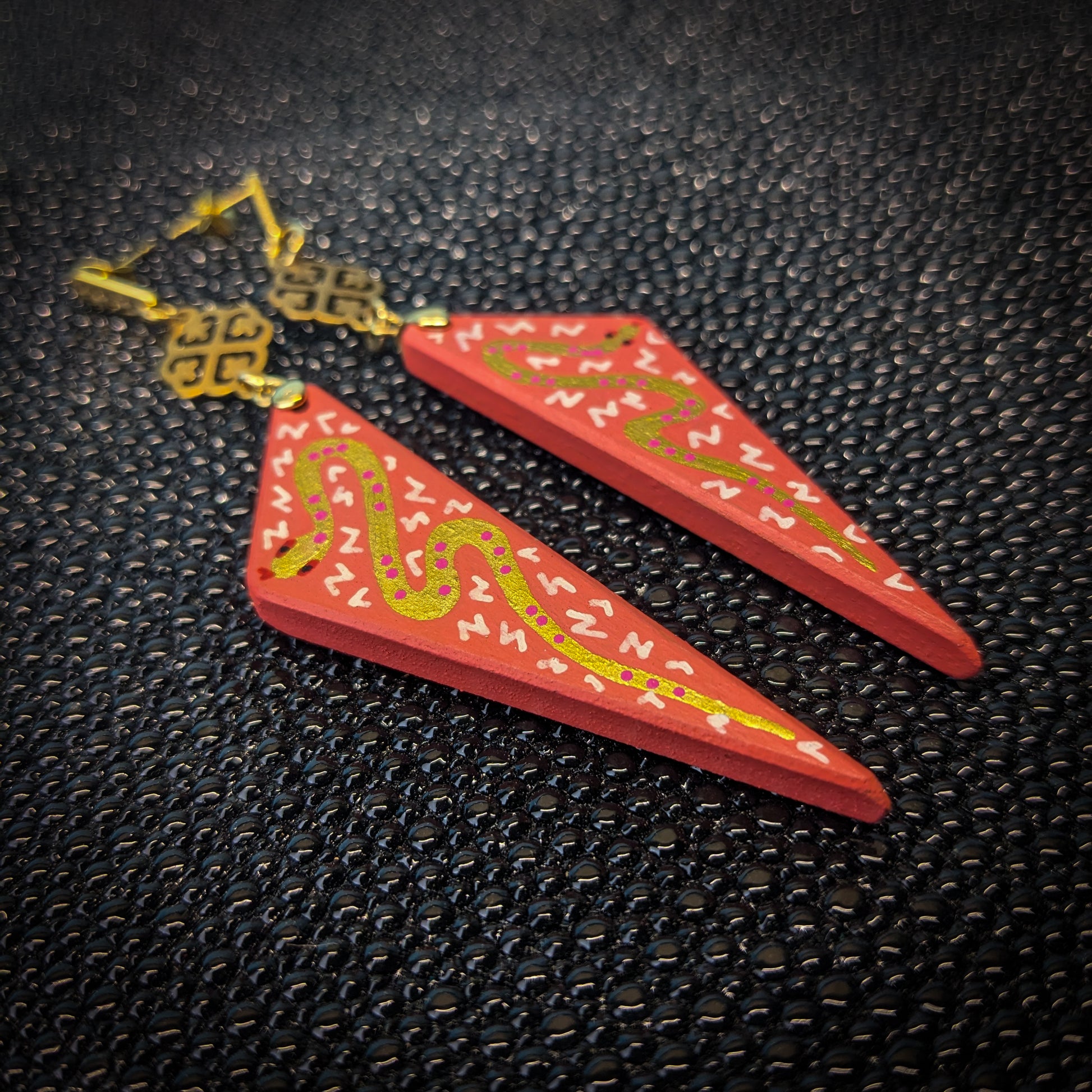 Handmade, lightweight, one of a kind, painted hardwood dangle earrings! I hand cut these earrings from poplar wood, sanded them and then handed them over to Kate (@fearsomebeast) who painted these beautiful snakes.