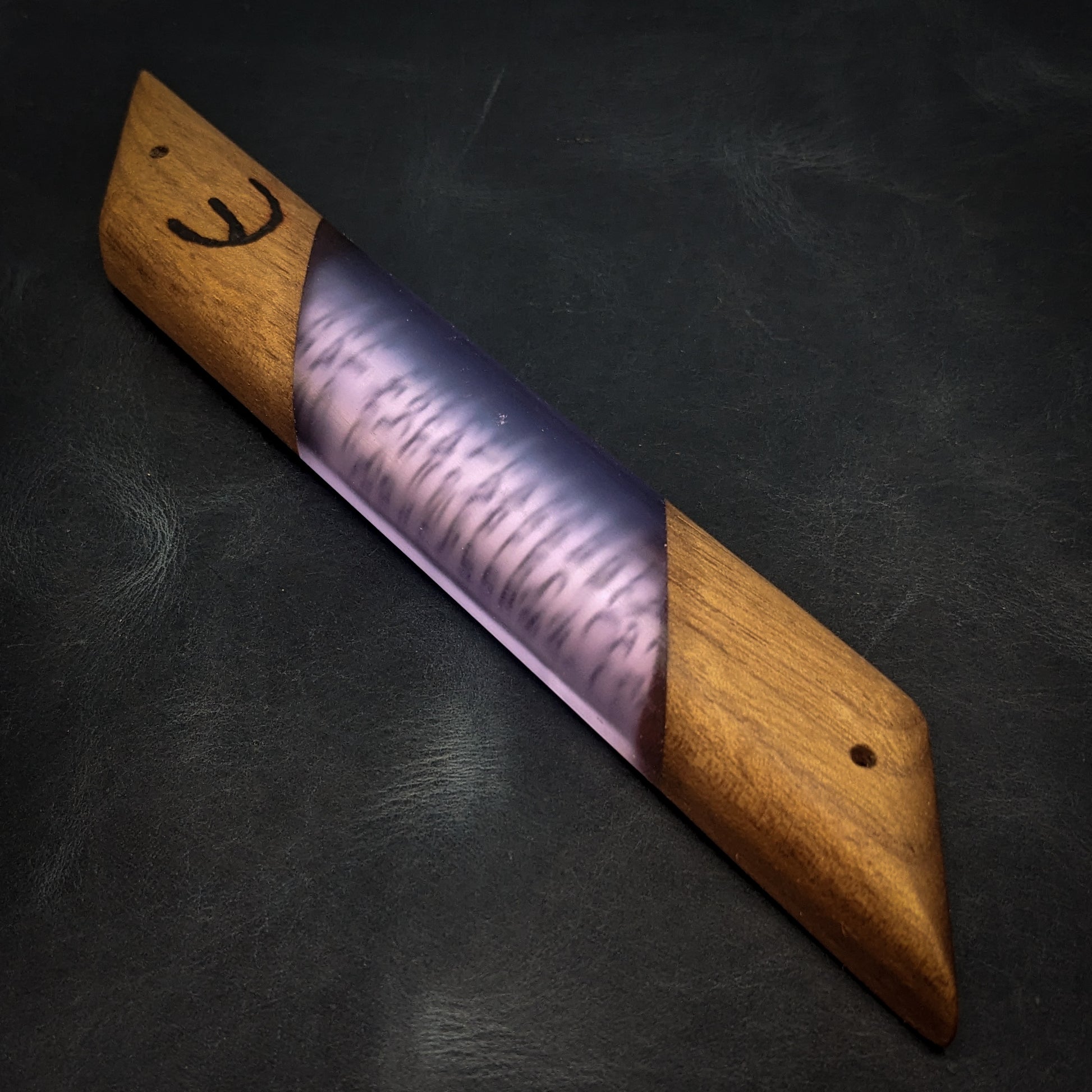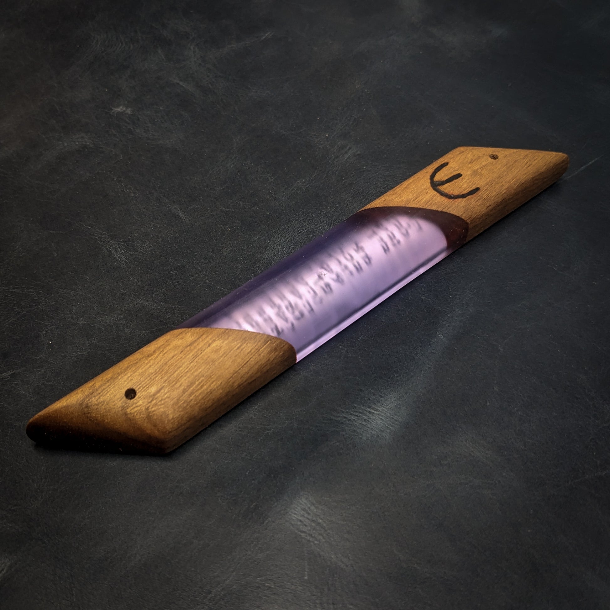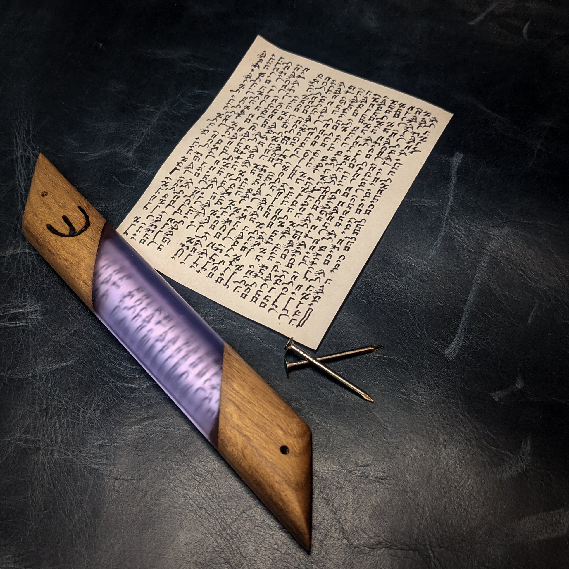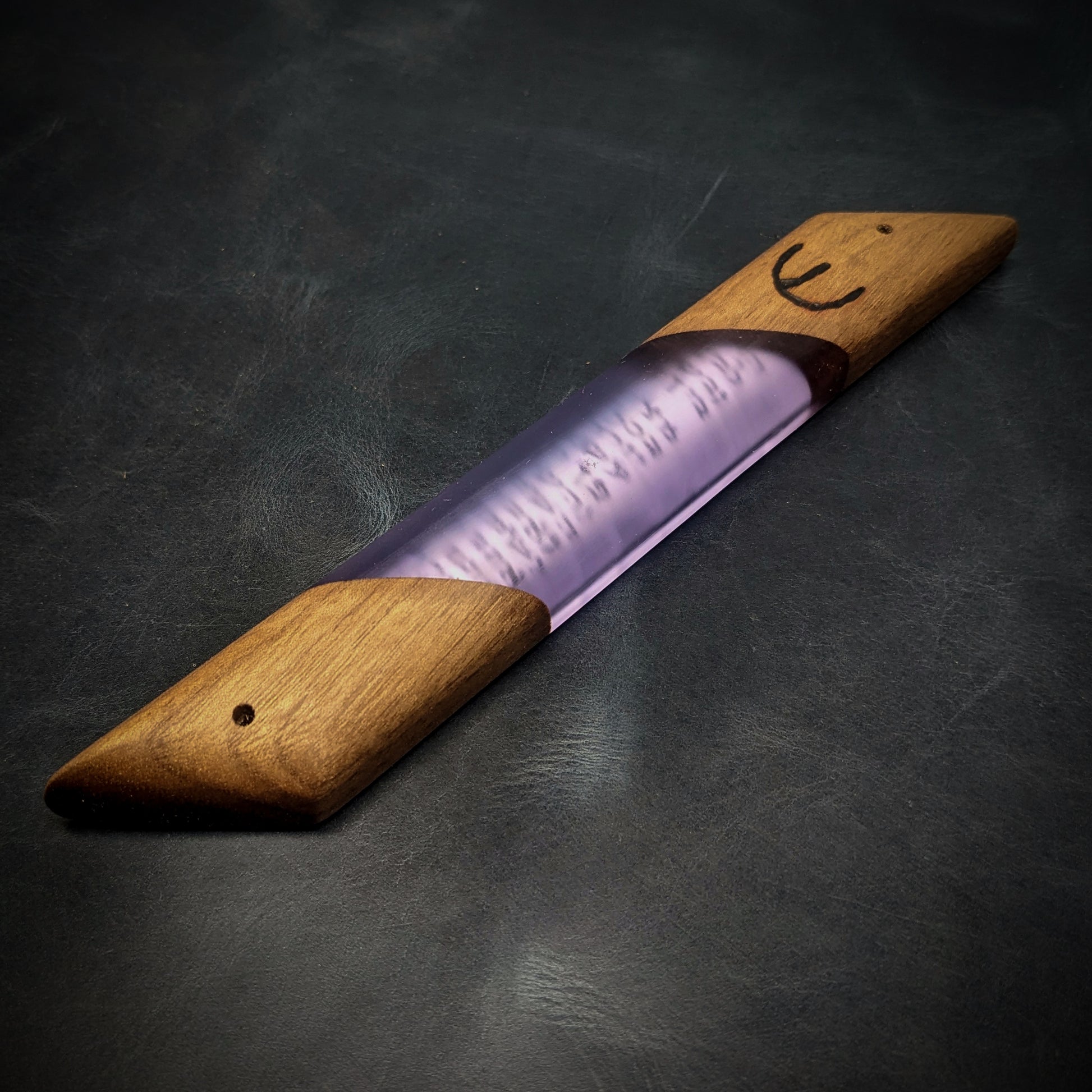 My signature hardwood and resin "window" mezuzah case is a perfect addition to any Jewish household. This one-of-a-kind mezuzah is made from black walnut and and purple resin. The clear resin allows you to see the scroll inside! A perfect gift for Bar/Bat Mitzvah's, holidays, weddings or any other occasion. My mezuzot are all finished with natural beeswax and citrus oil.