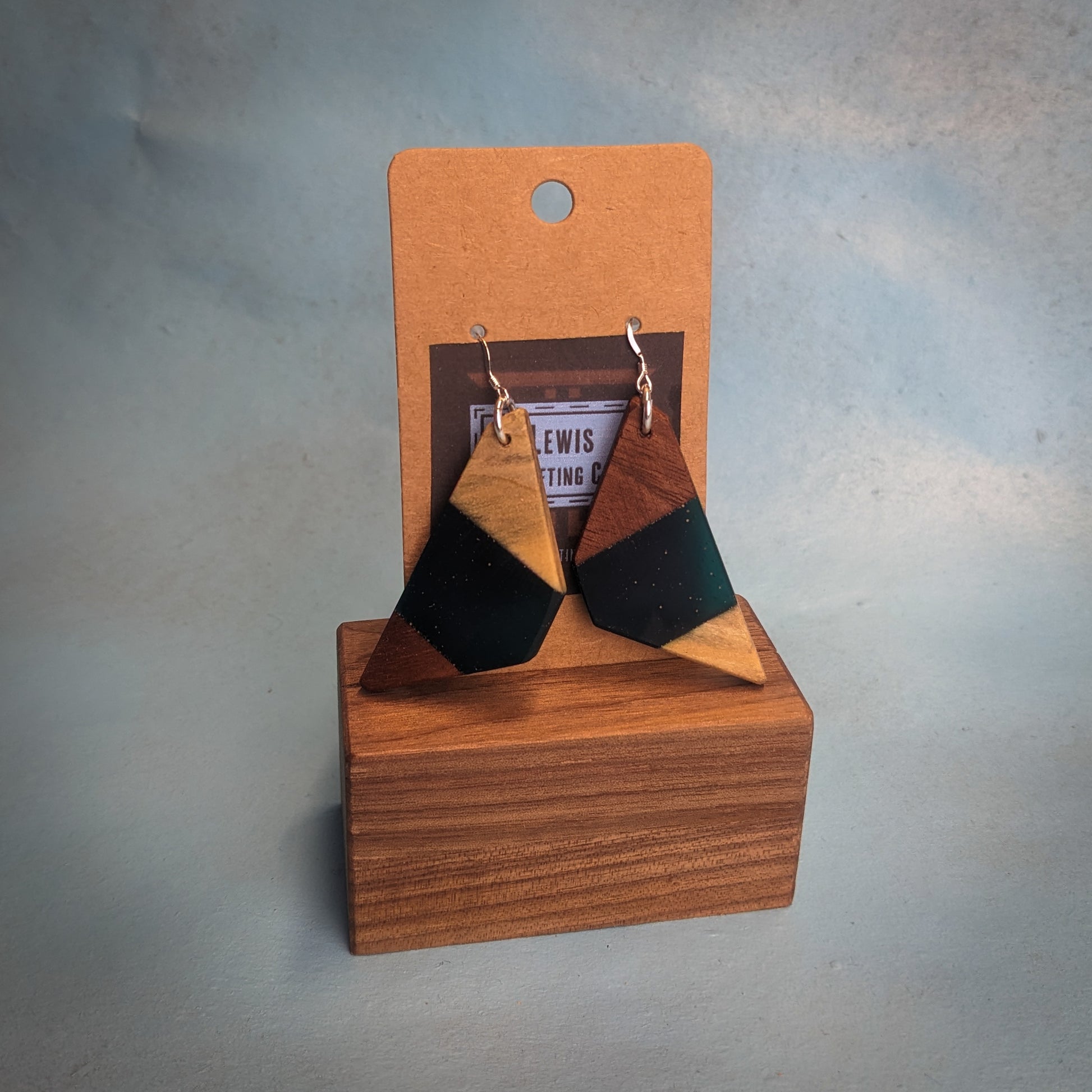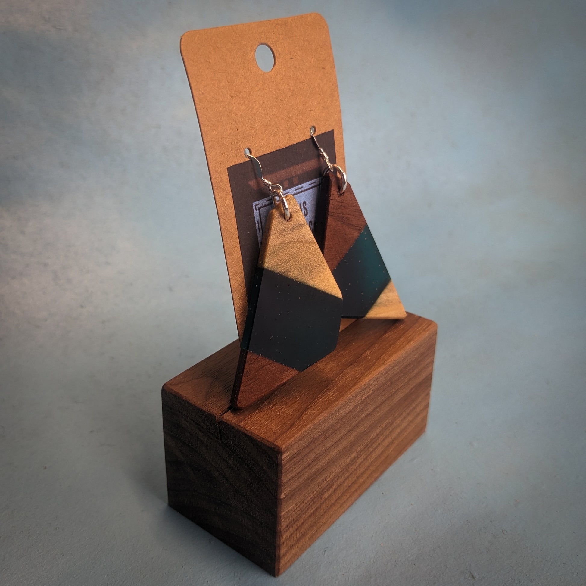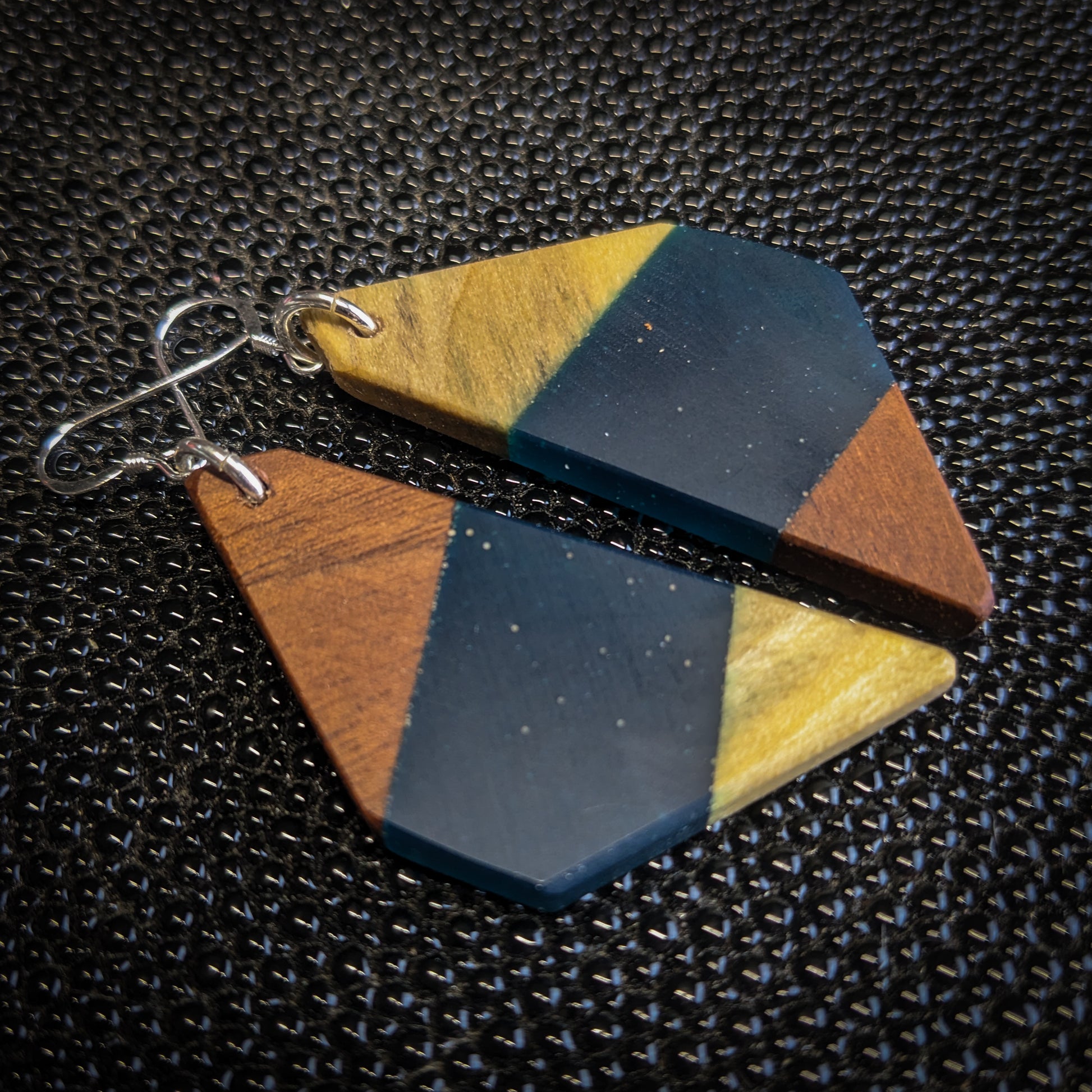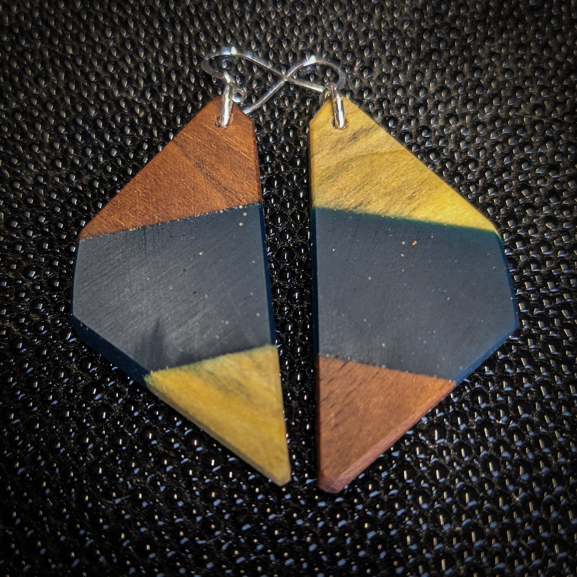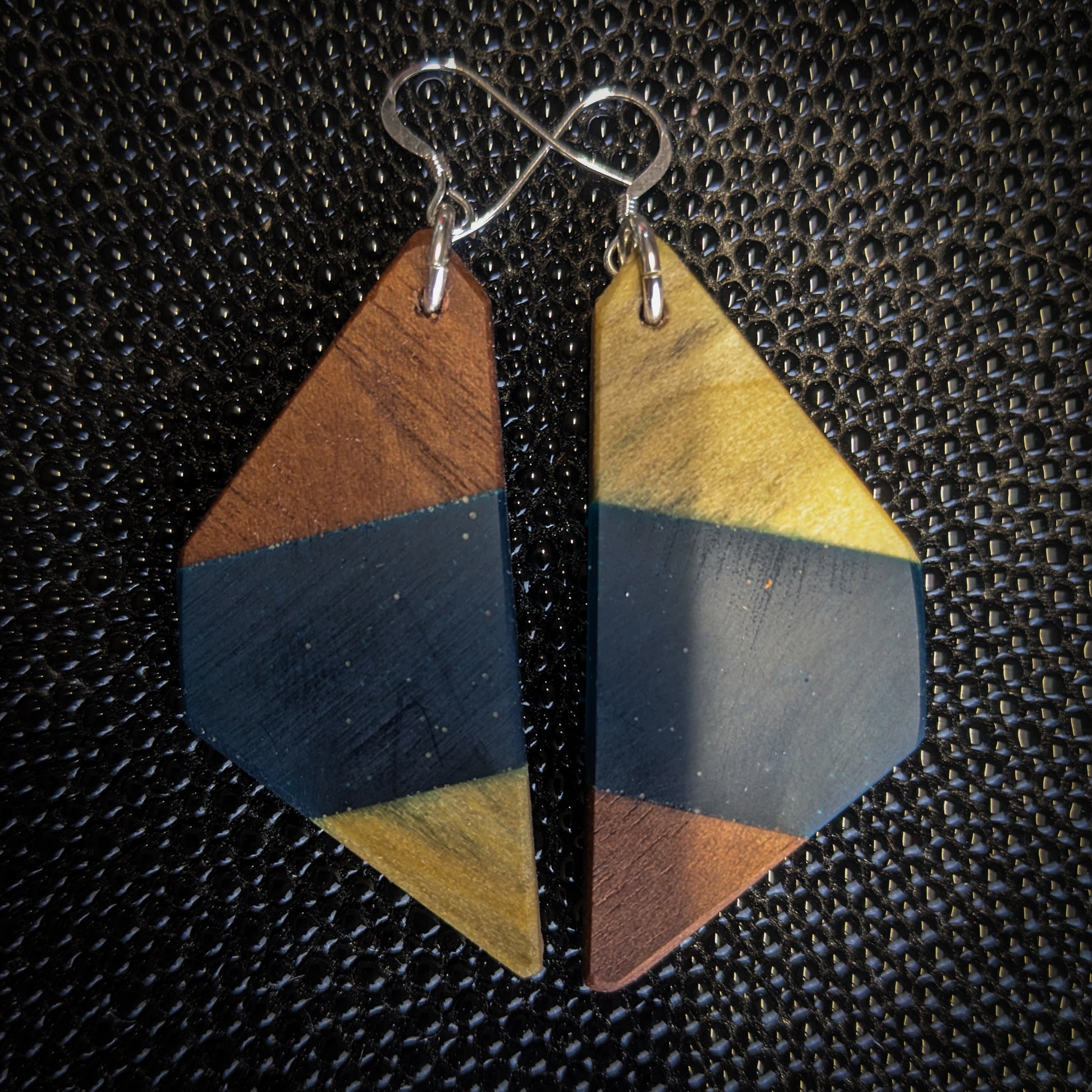 Handmade, lightweight, one of a kind, colorful wood and resin dangle earrings! All of my earrings are hand sanded to a silky smooth finish and hung from sterling silver hardware. I use a natural beeswax and citrus oil finish on all of my earrings.