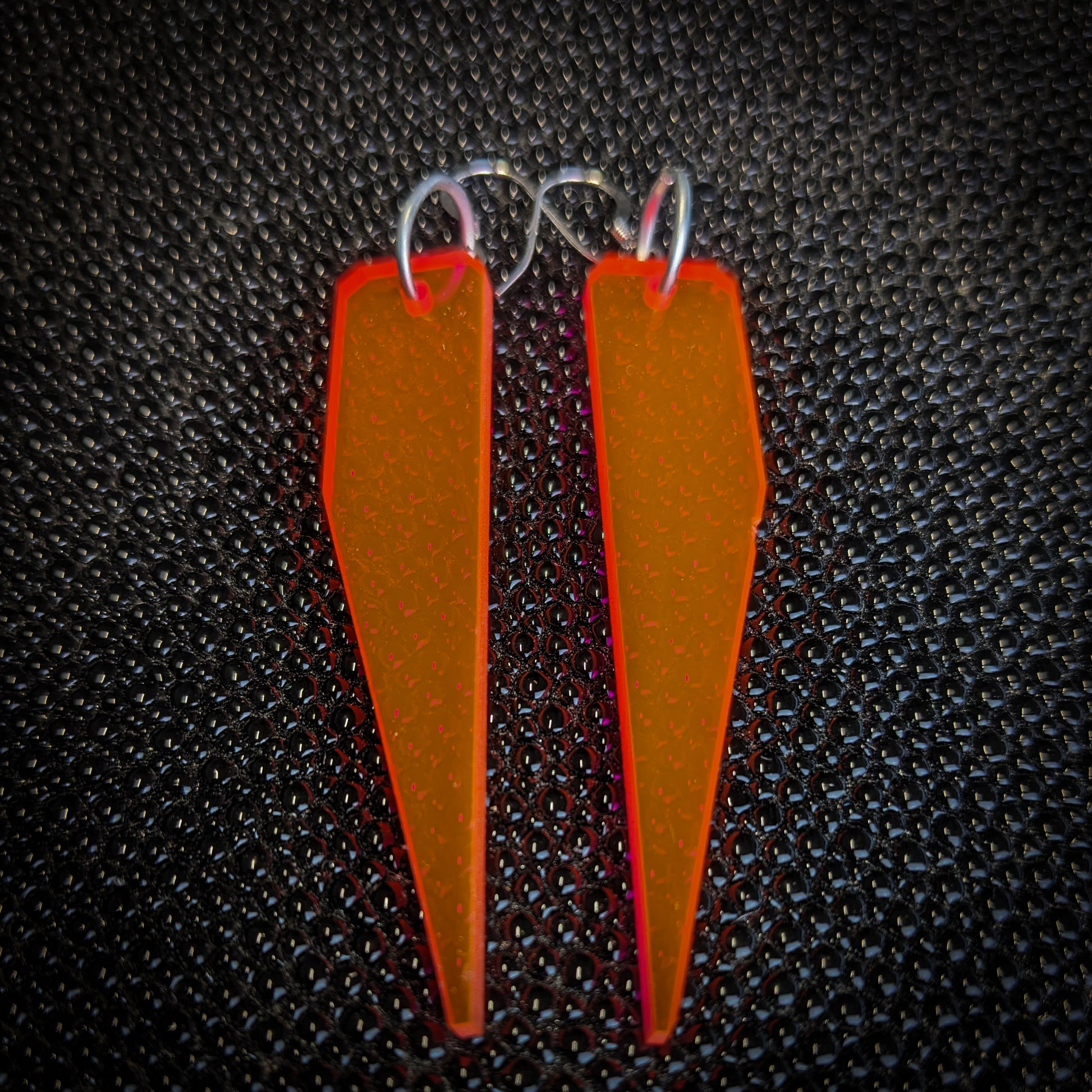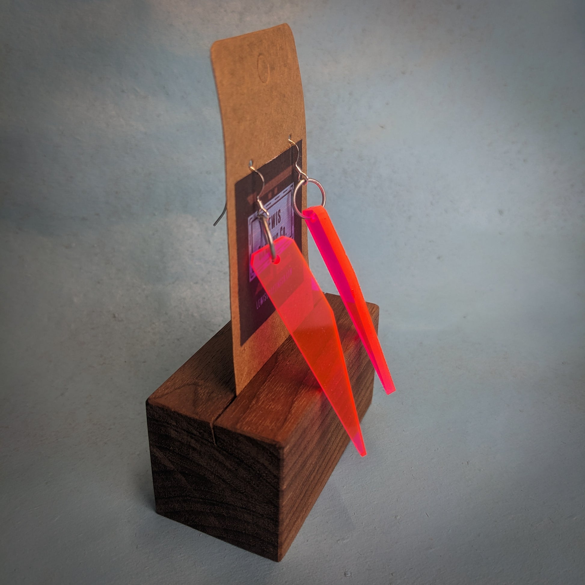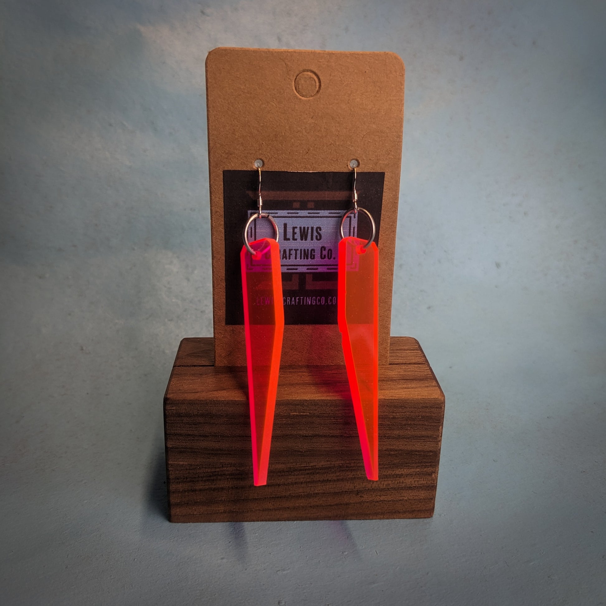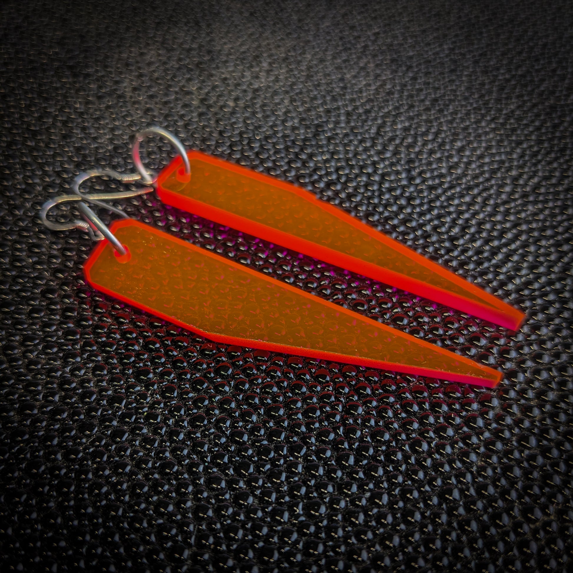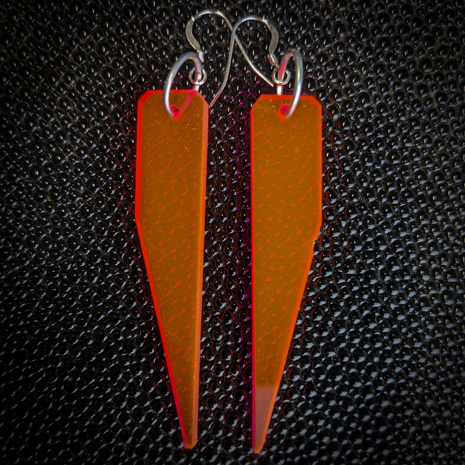 Handmade, lightweight, one of a kind, recycled plastic dangle earrings! All of my earrings are hand cut, sanded to shape, and hung from sterling silver hardware. They are made out of durable, bright, recycled plastics.