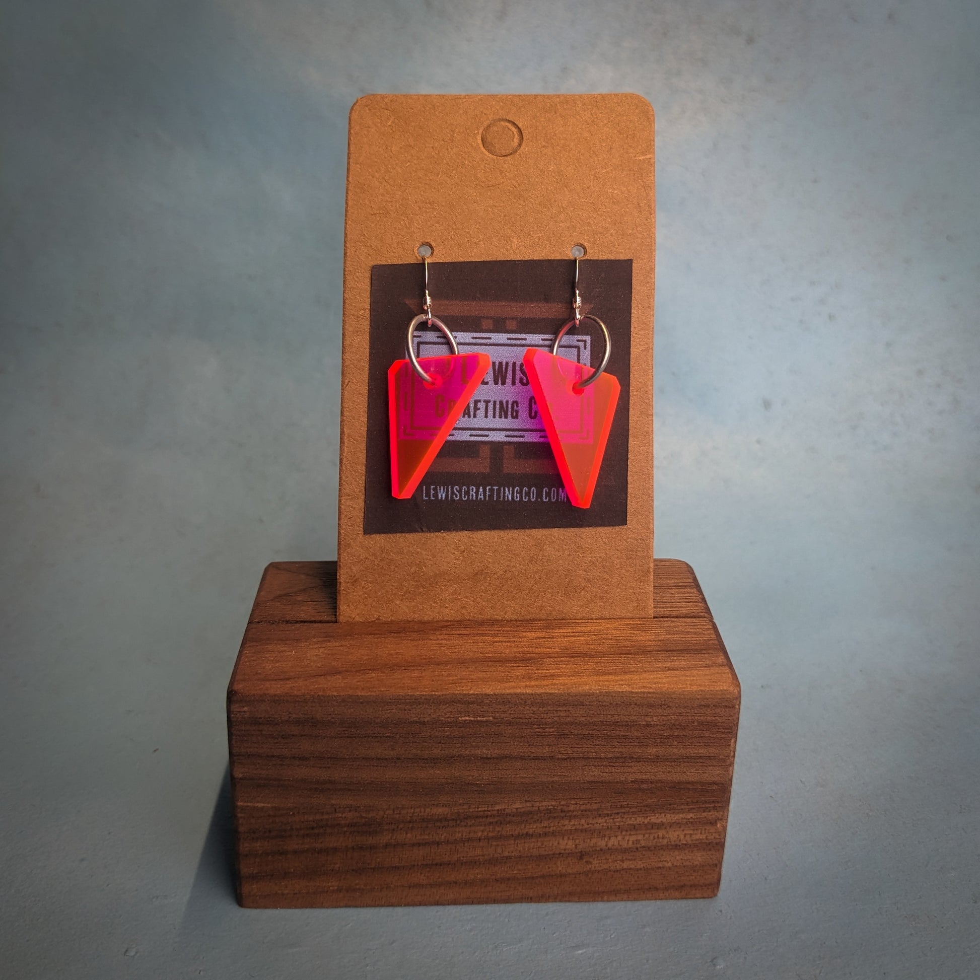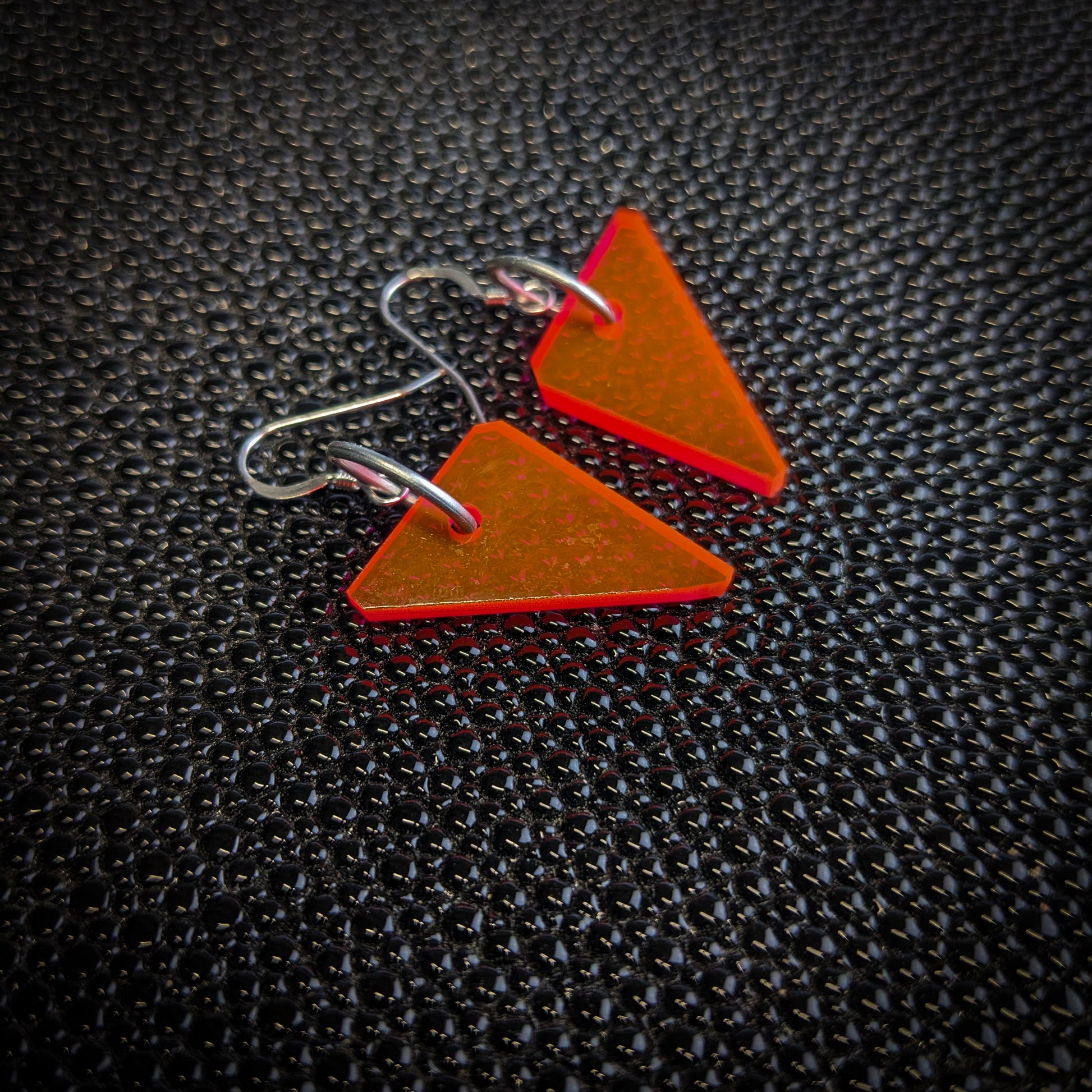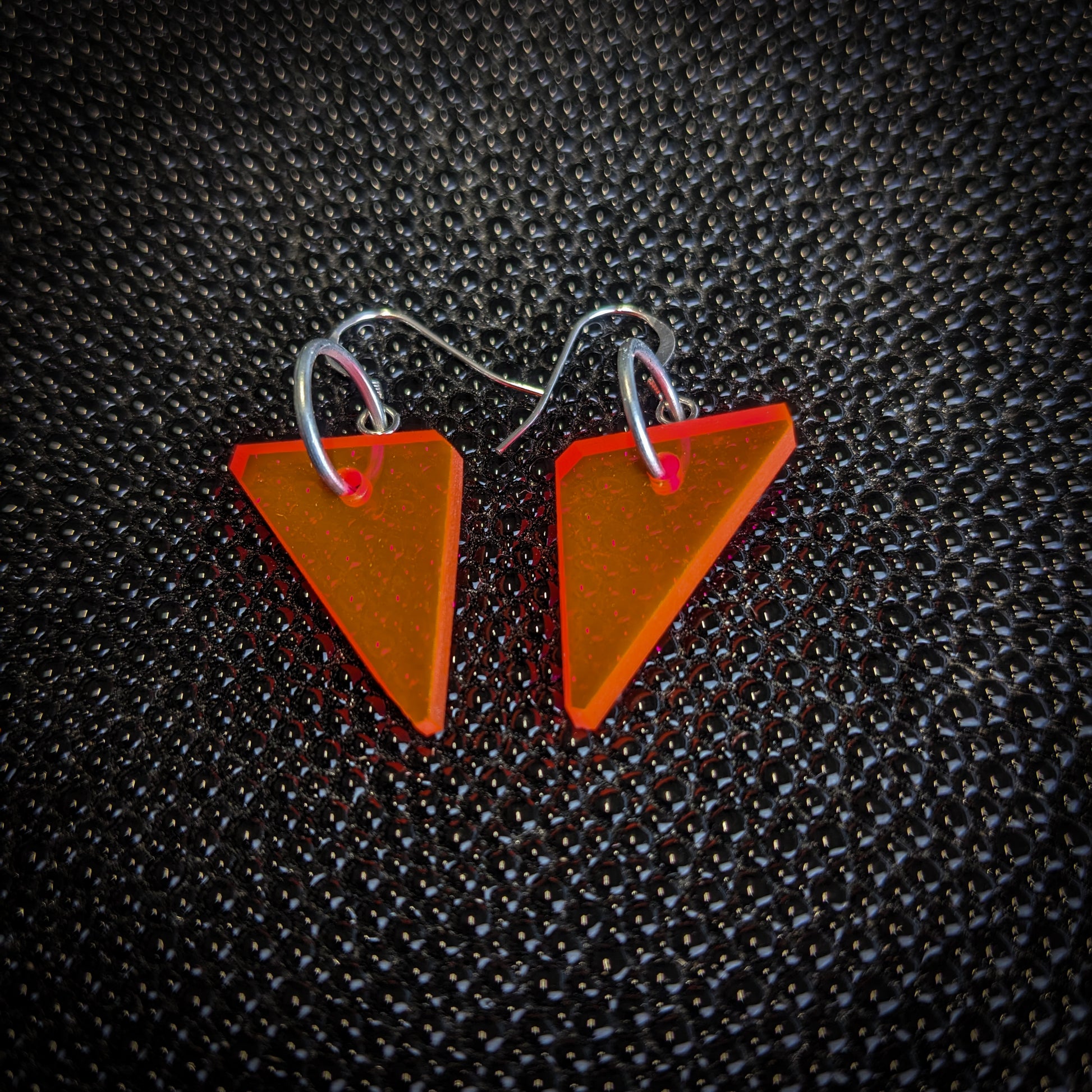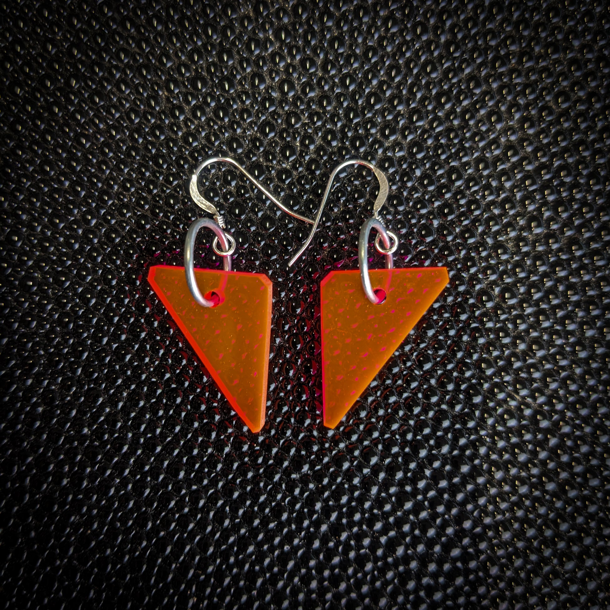 Handmade, lightweight, one of a kind, recycled plastic dangle earrings! All of my earrings are hand cut, sanded to shape, and hung from sterling silver hardware. They are made out of durable, bright, recycled plastics.