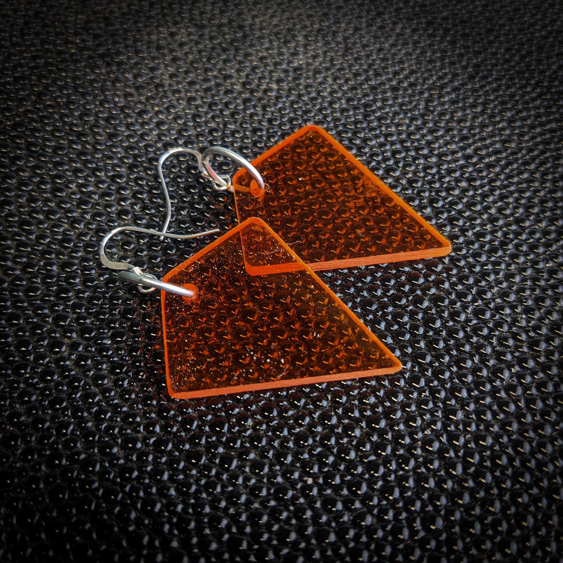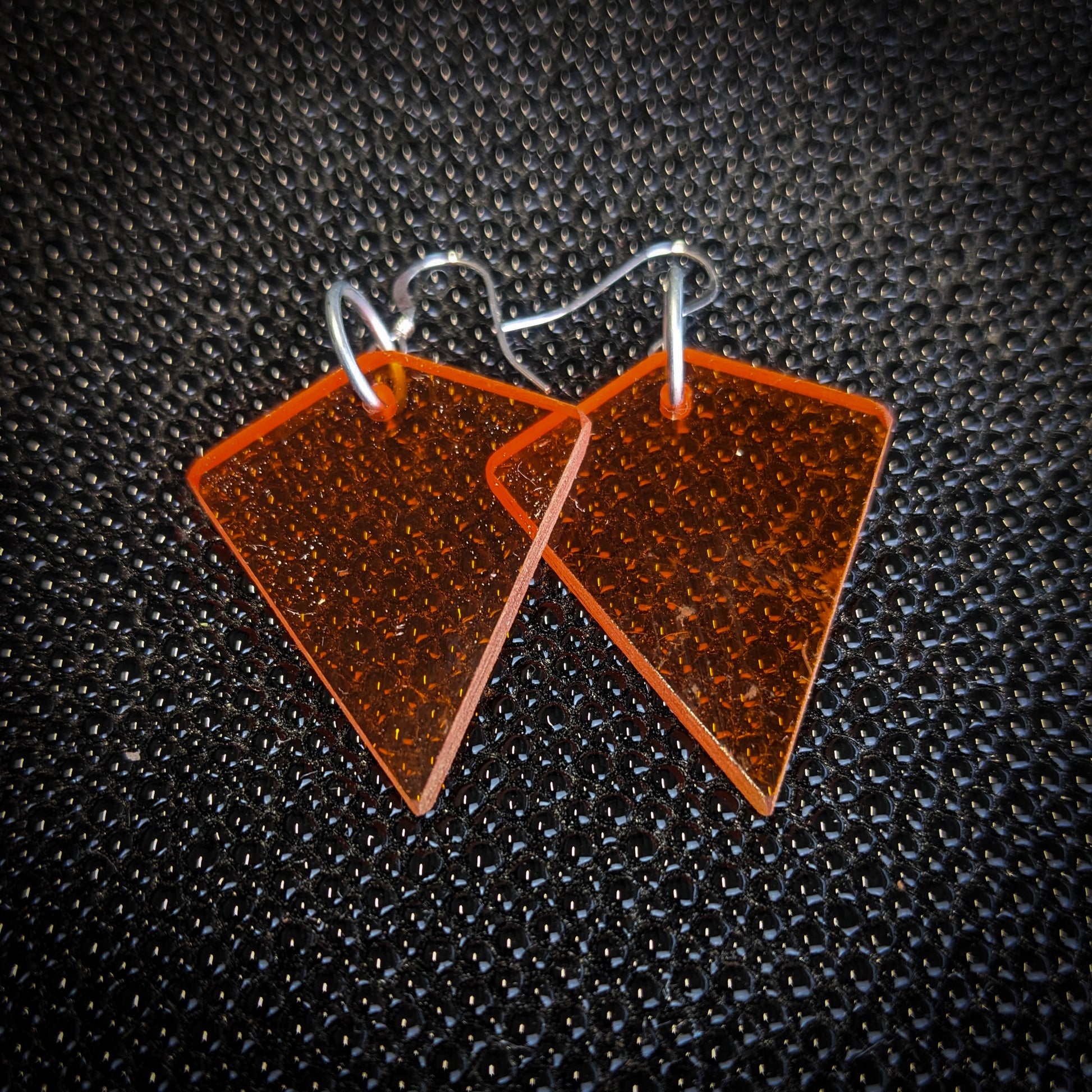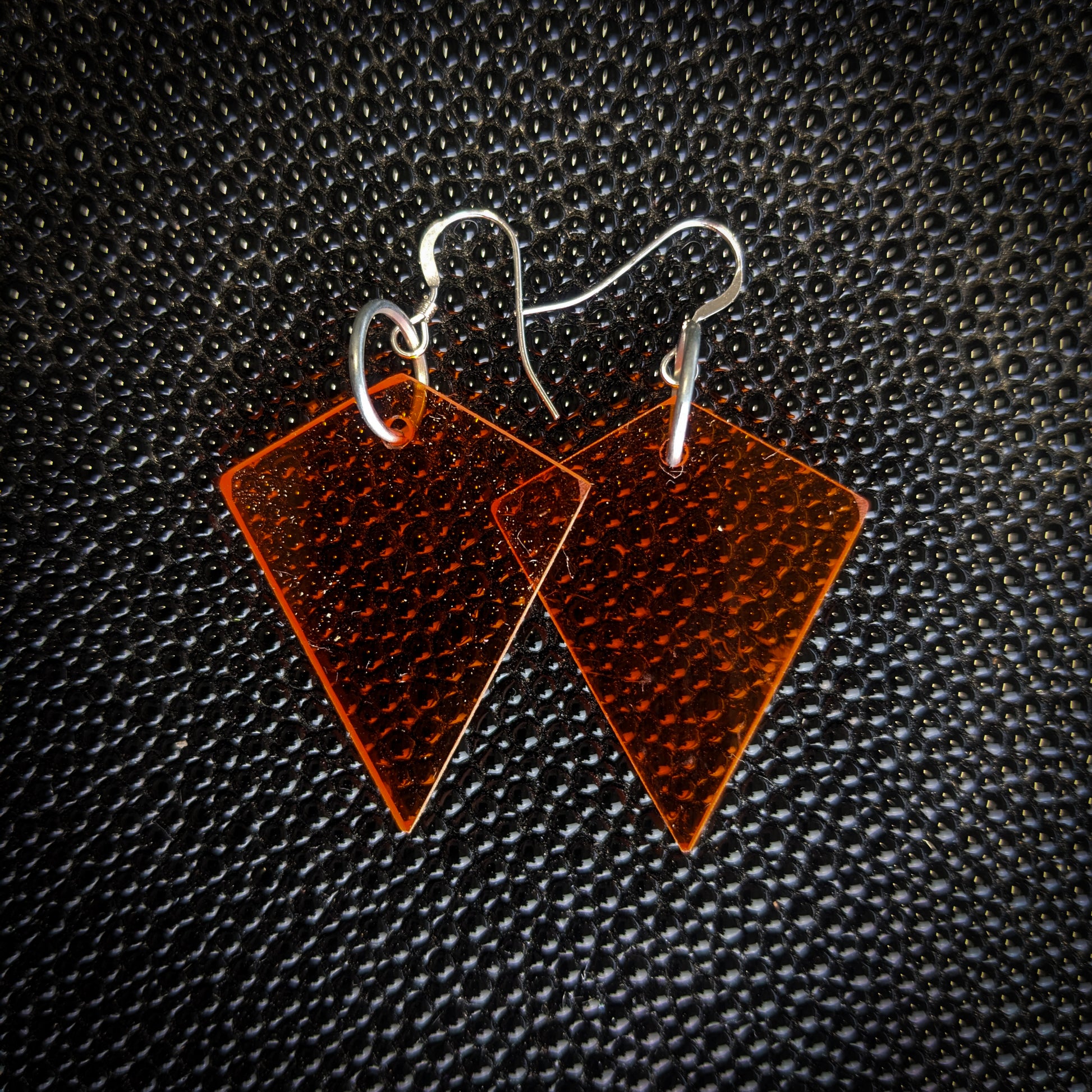 Handmade, lightweight, one of a kind, recycled plastic dangle earrings! All of my earrings are hand cut, sanded to shape, and hung from sterling silver hardware. They are made out of durable, bright, recycled plastics.