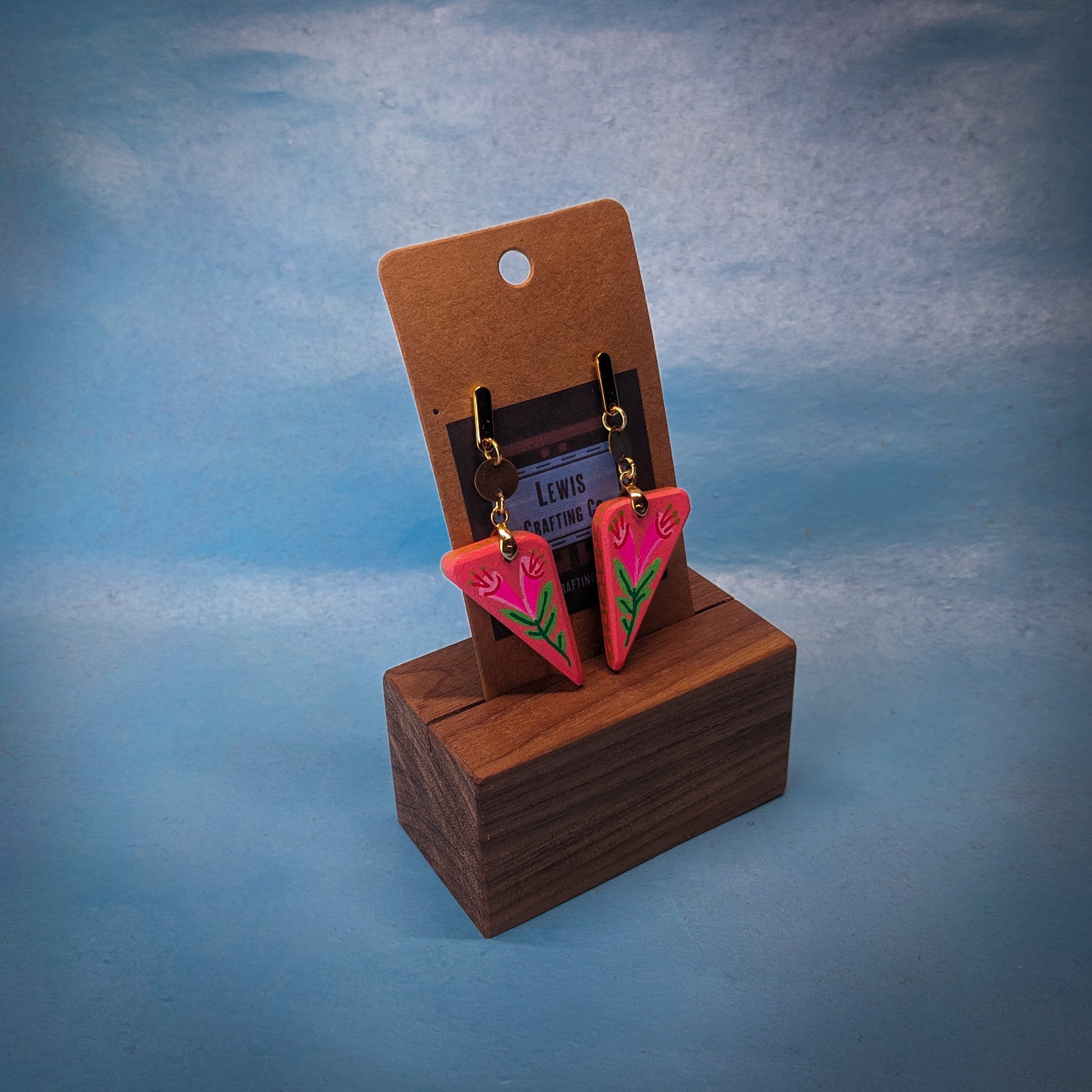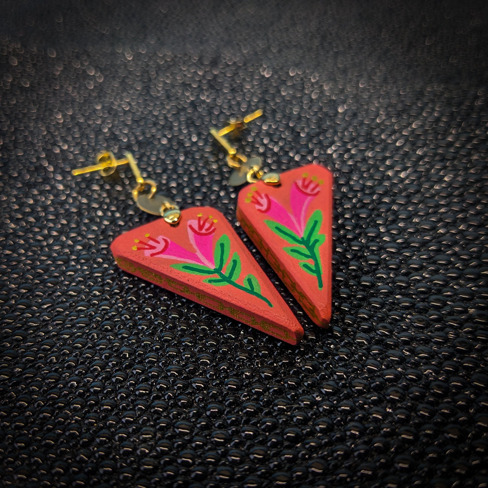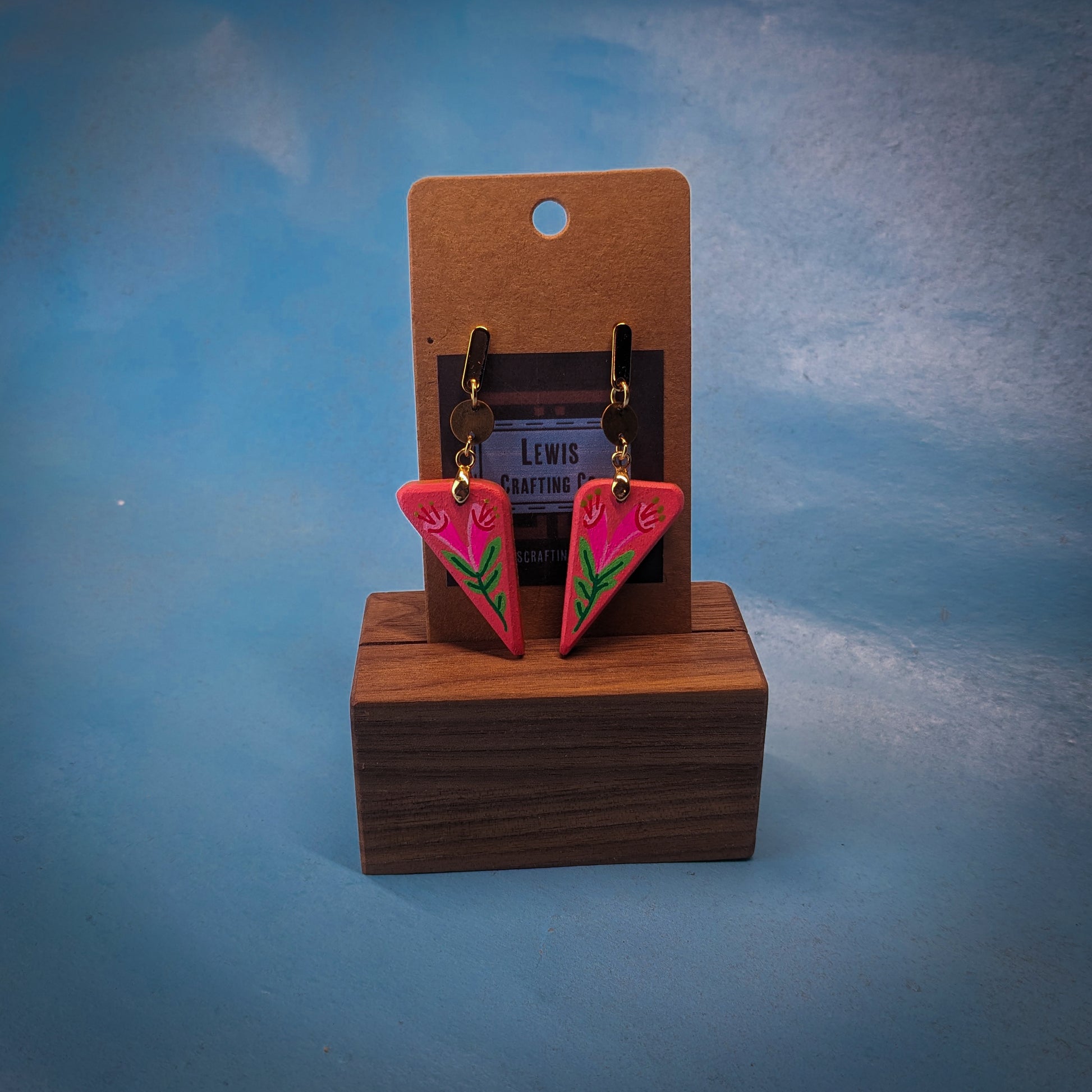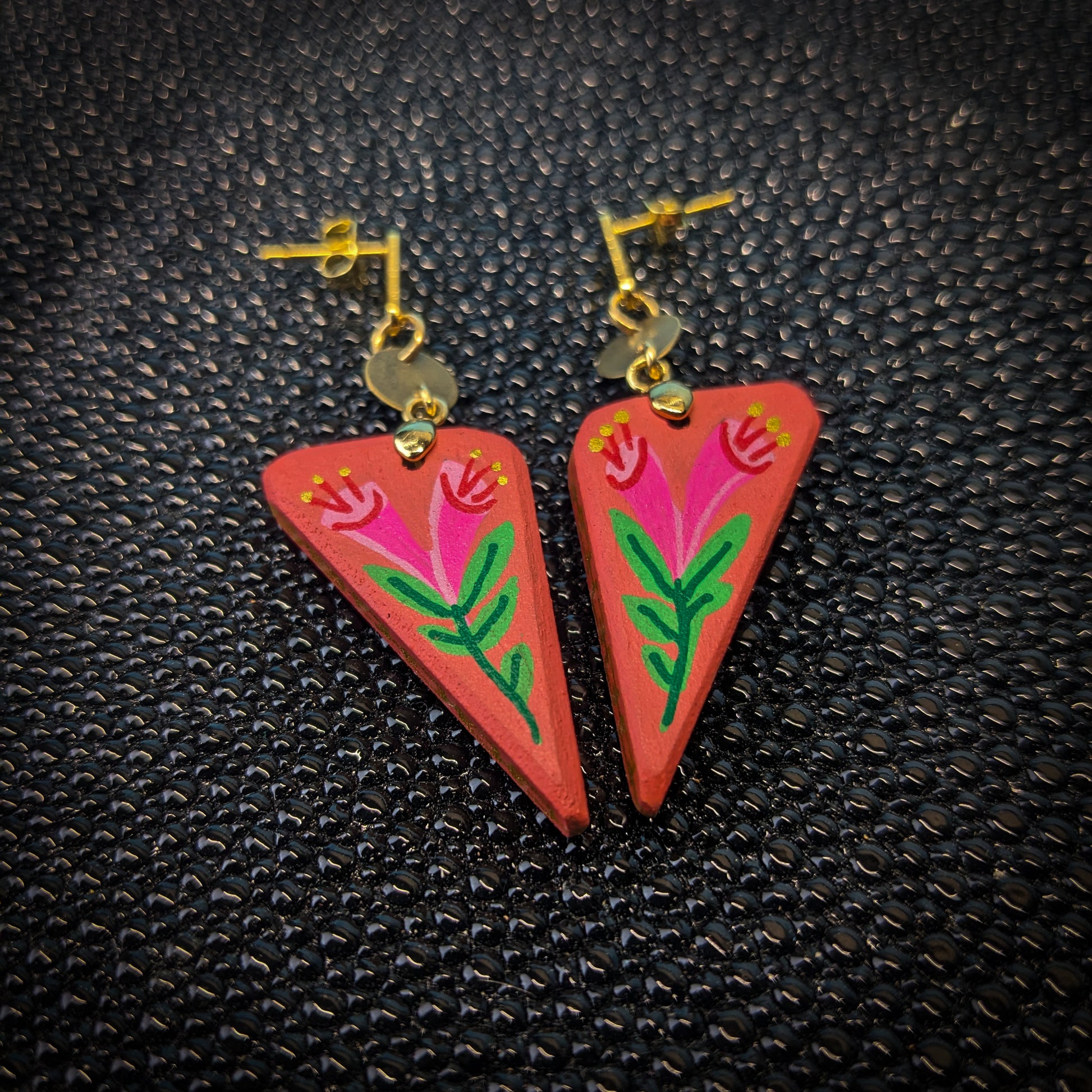 Handmade, lightweight, one of a kind, painted hardwood dangle earrings! I hand cut these earrings from poplar wood, sanded them and then handed them over to Kate (@fearsomebeast) who added these beautiful flowers.