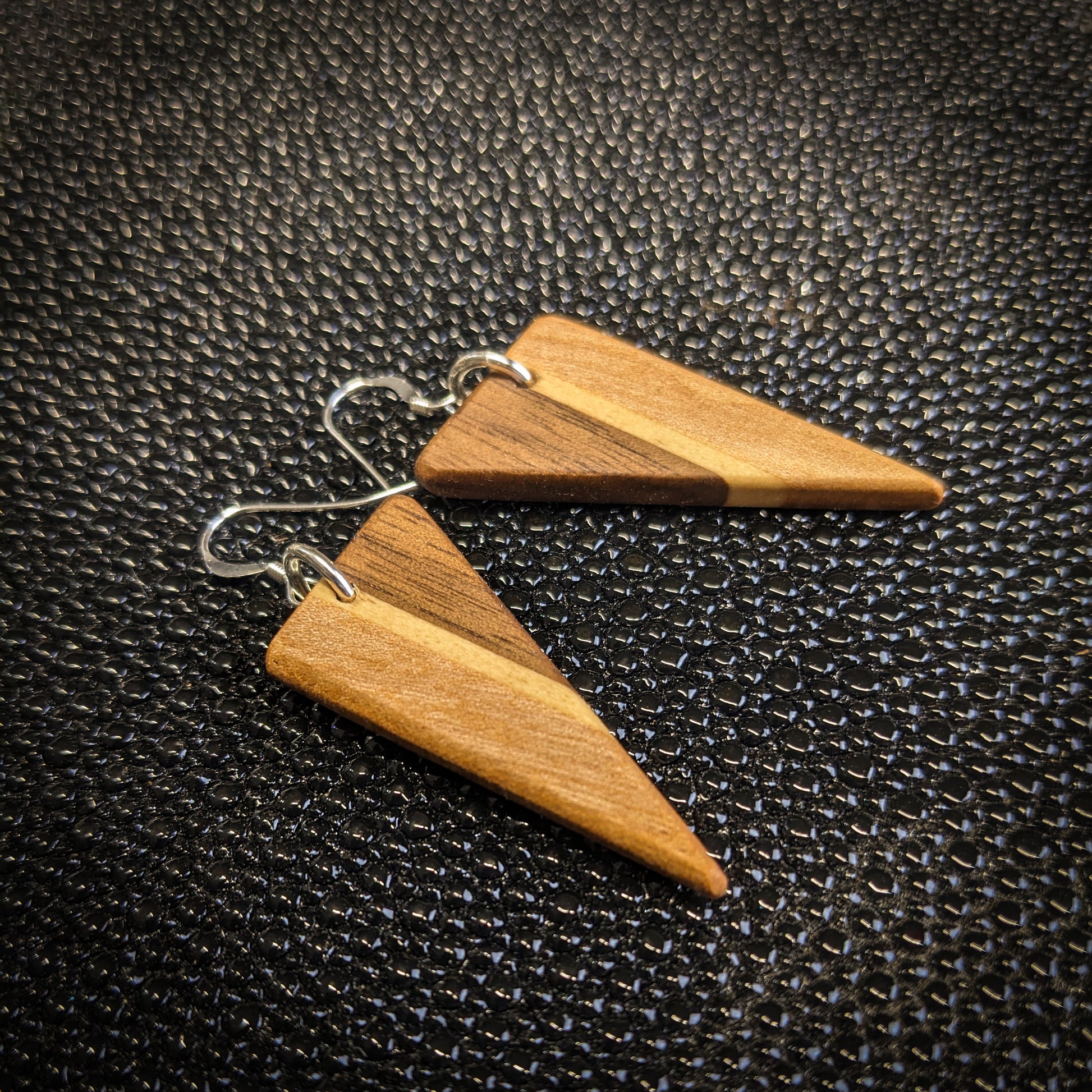 Handmade, lightweight, one of a kind, hardwood dangle earrings! All of my earrings are hand sanded to a silky smooth finish and hung from sterling silver hardware. I use a natural beeswax and citrus oil finish on all of my earrings.